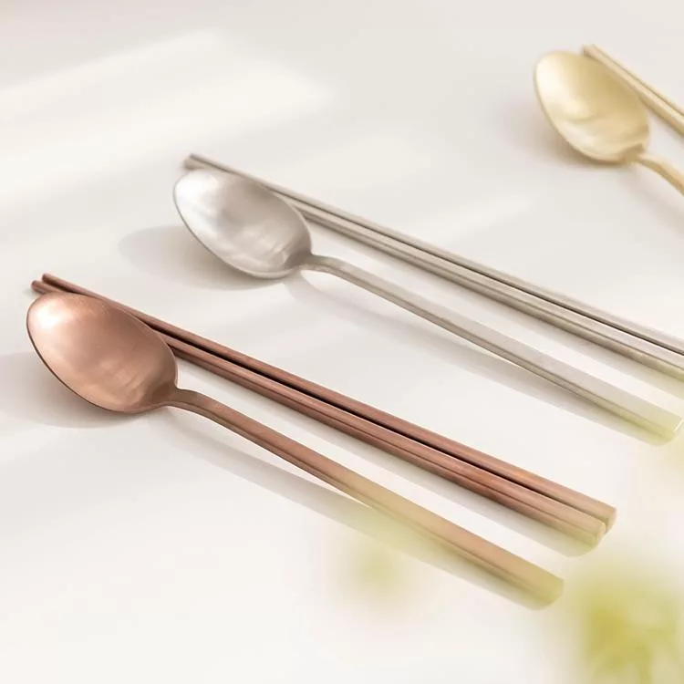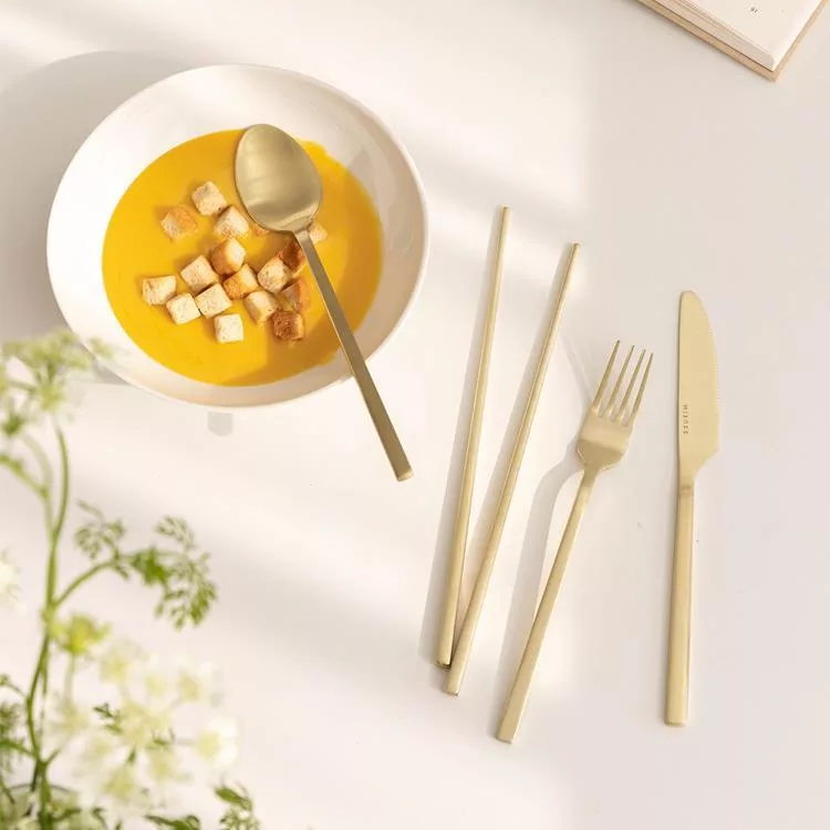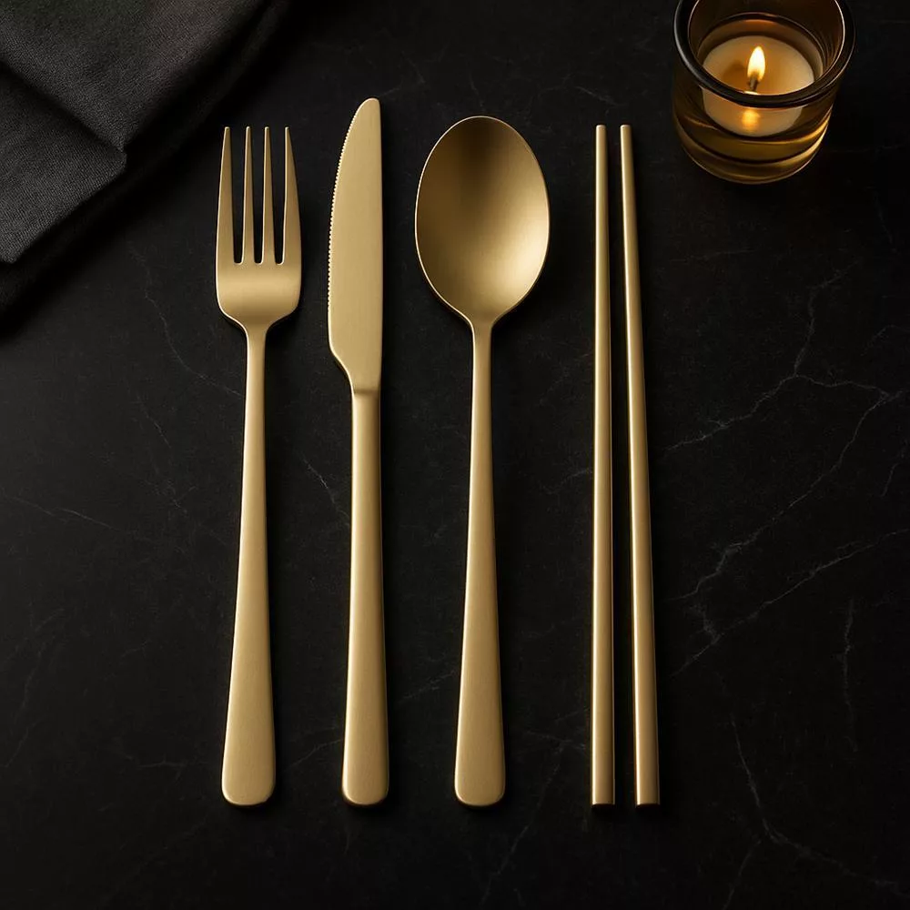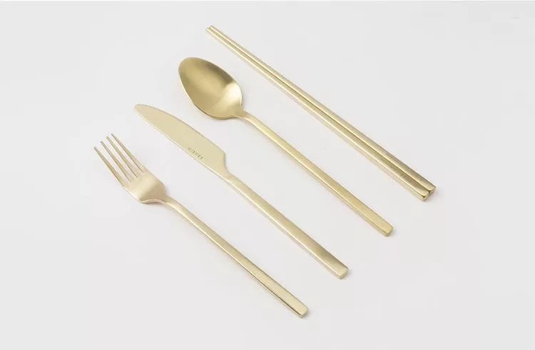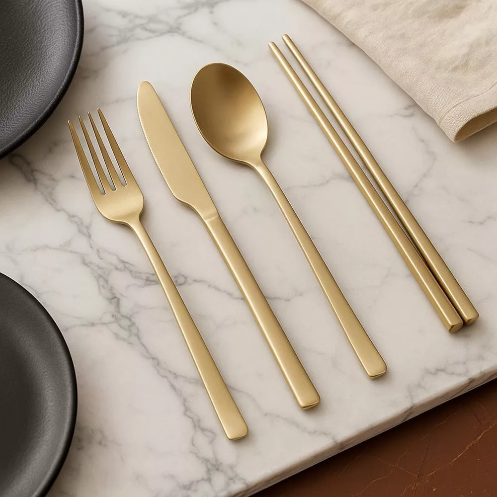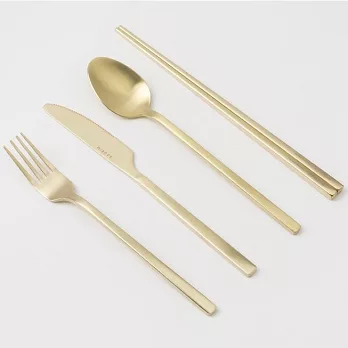 【韓國Ssueim】Pierre霧面 不鏽鋼餐具4件組(筷匙刀叉) ‧ 香檳金