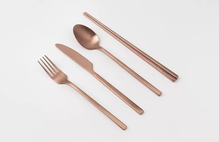 【EZlife】304不鏽鋼歐式便攜餐具四件套 金粉