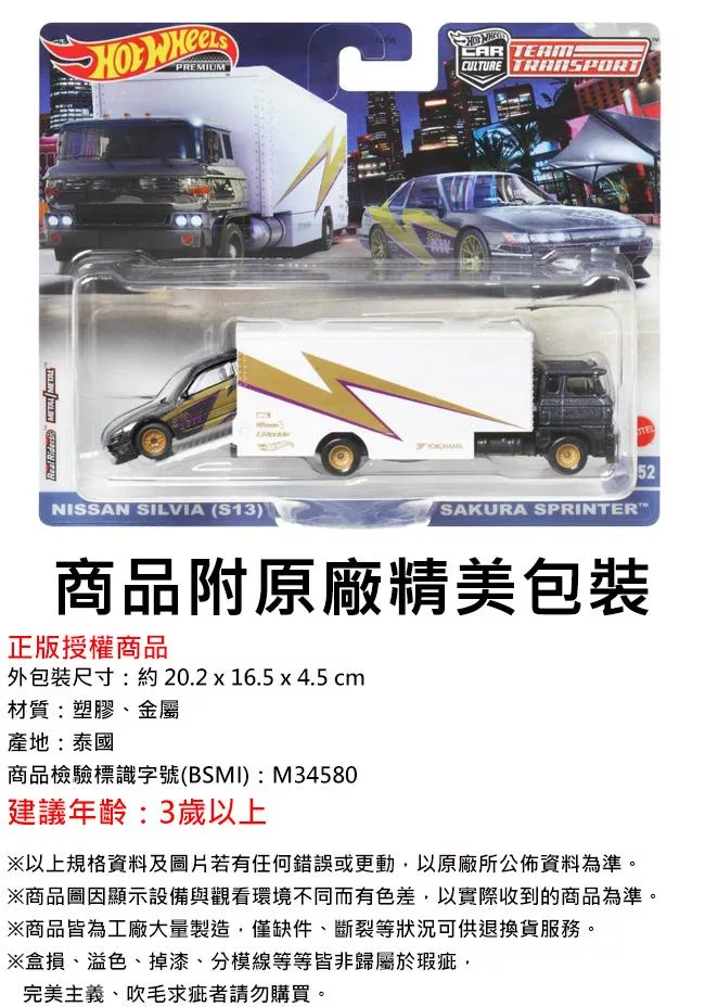 【正版授權】風火輪PREMIUM 新運輸車組 #52 日產 SILVIA S13 & SAKURA SPRINTER 玩具車