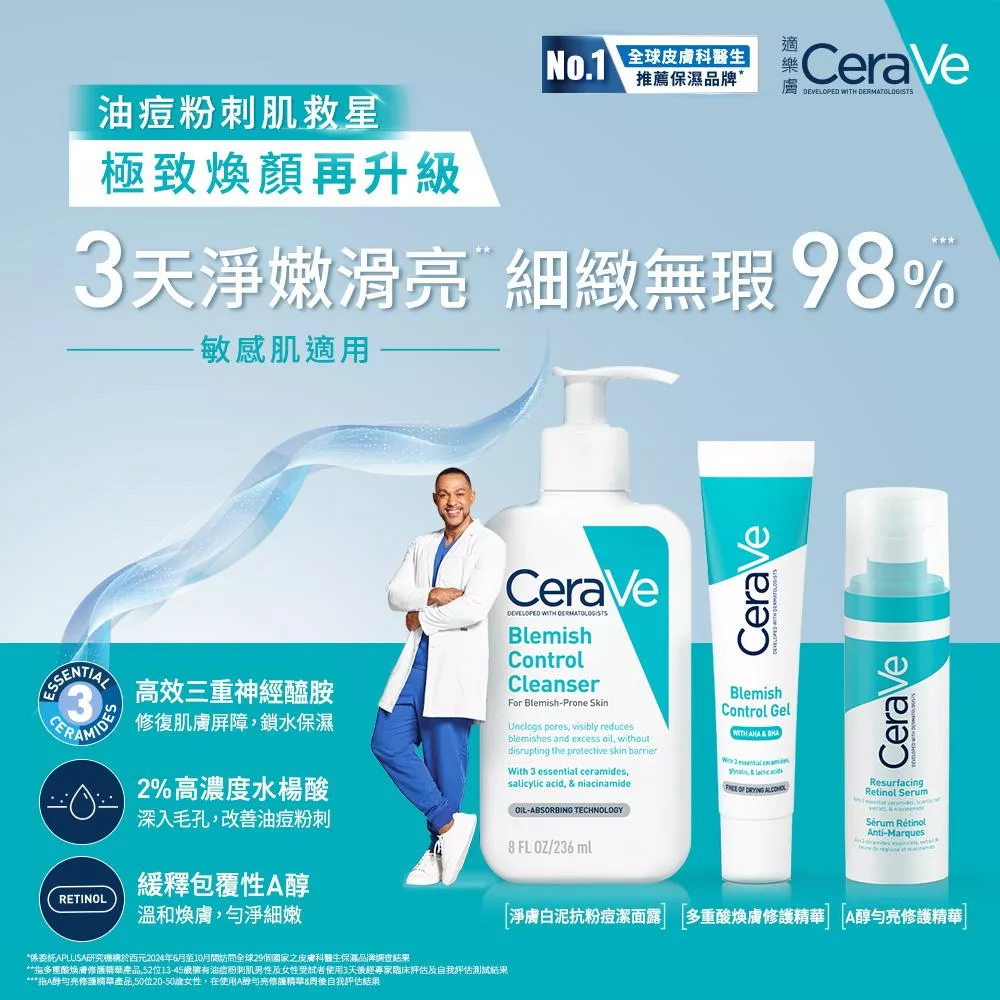 【CeraVe適樂膚】淨膚白泥抗粉痘潔面露 236ml+多重酸煥膚修護精華 40ml 獨家特談組(控油抗痘/極效煥膚)_組合最低效期2027/02/01
