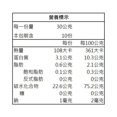 • 【每份營養成份】如營養標示