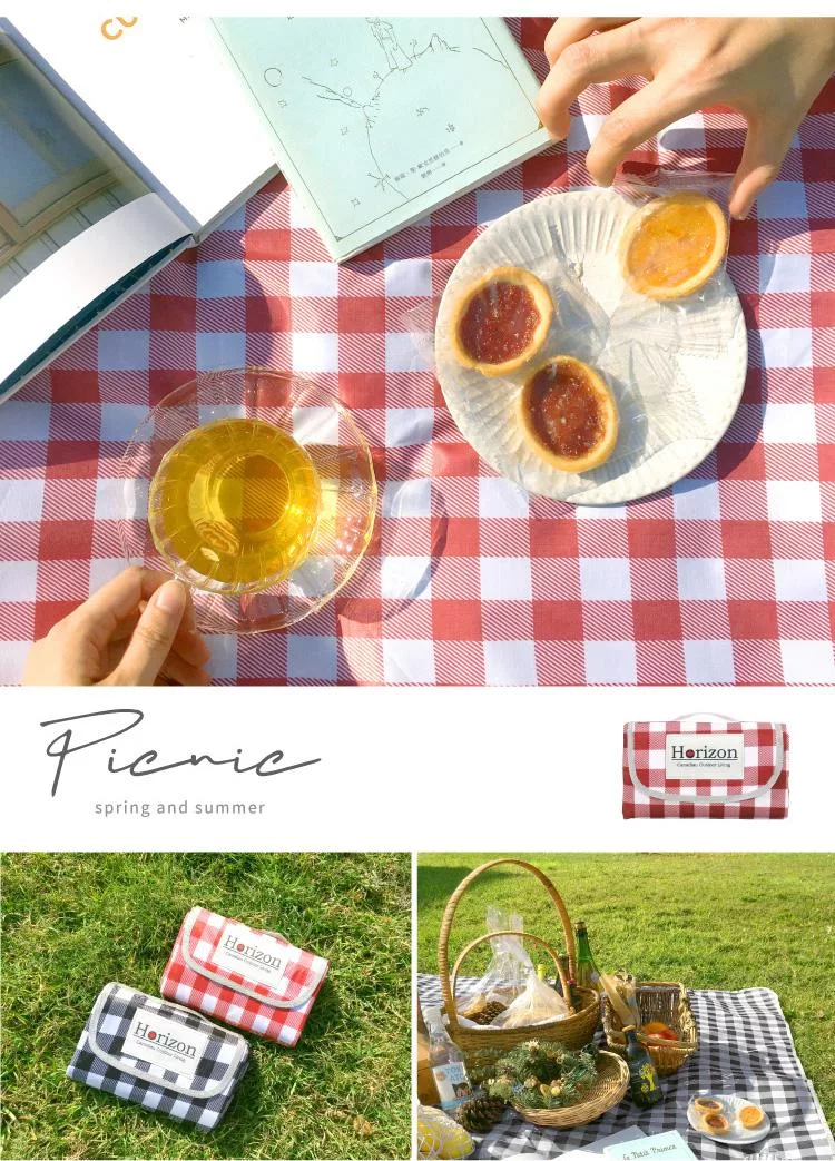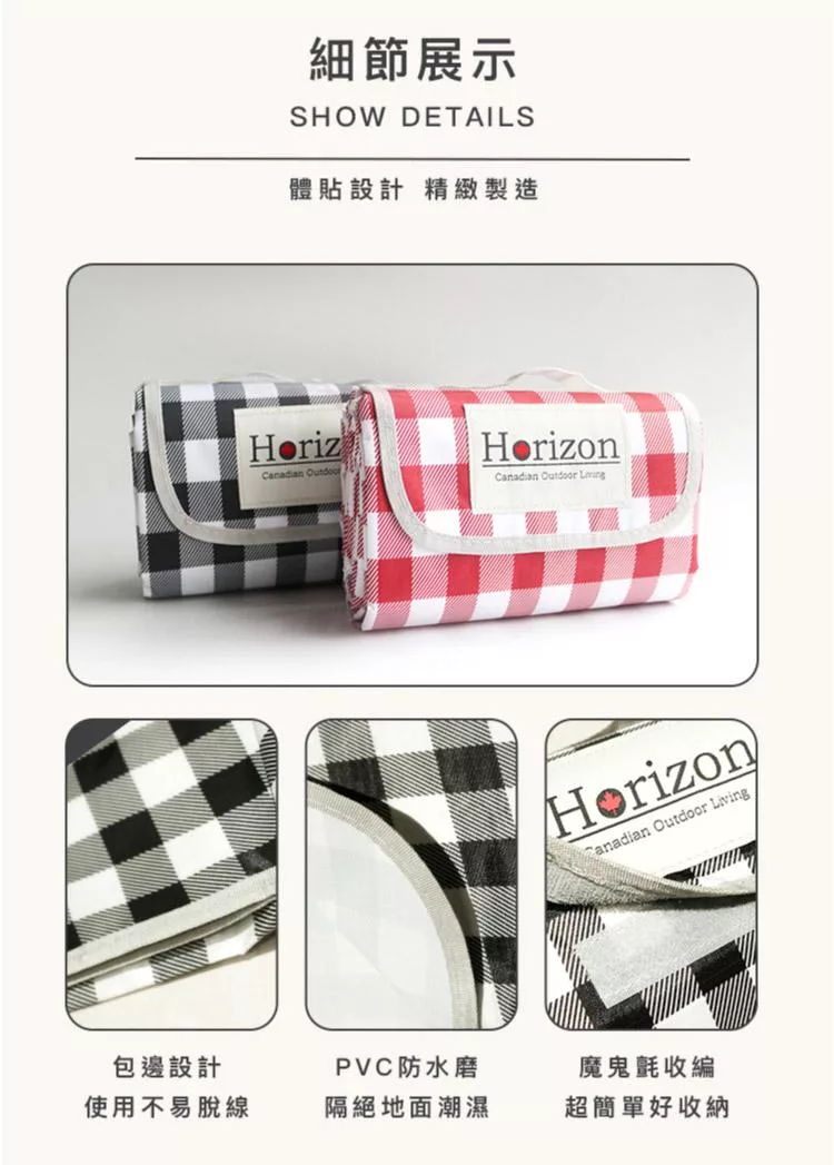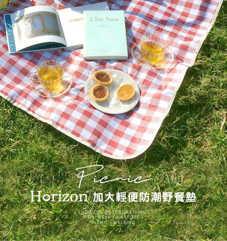 【Horizon 天際線】法式格紋加大款輕便防潮野餐墊 200x200cm 巴洛克紅白格