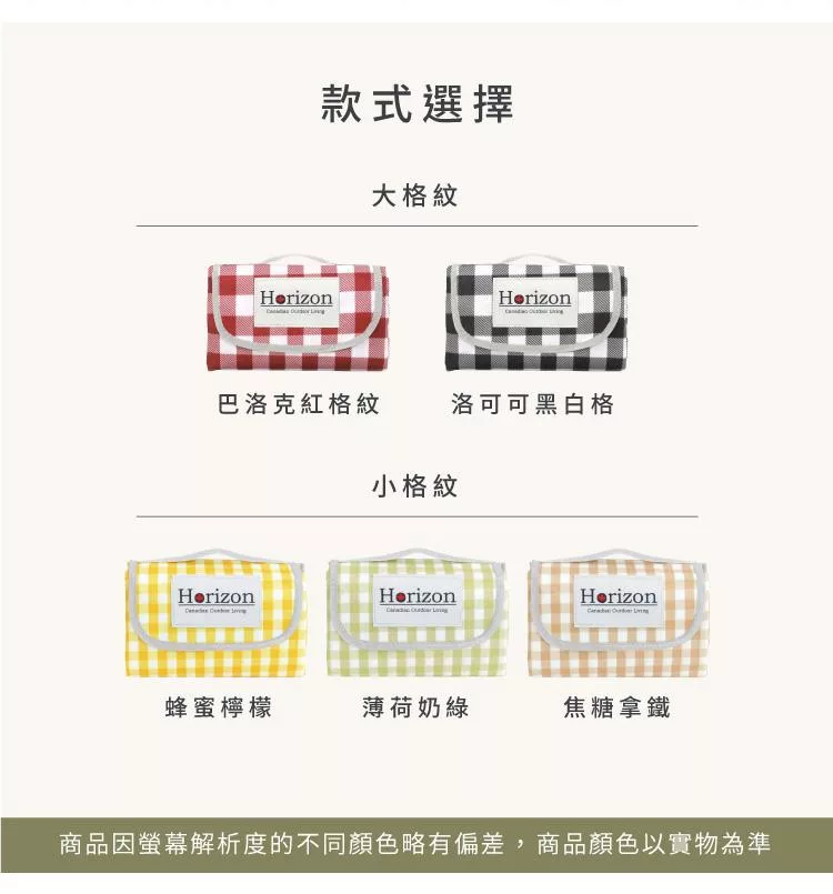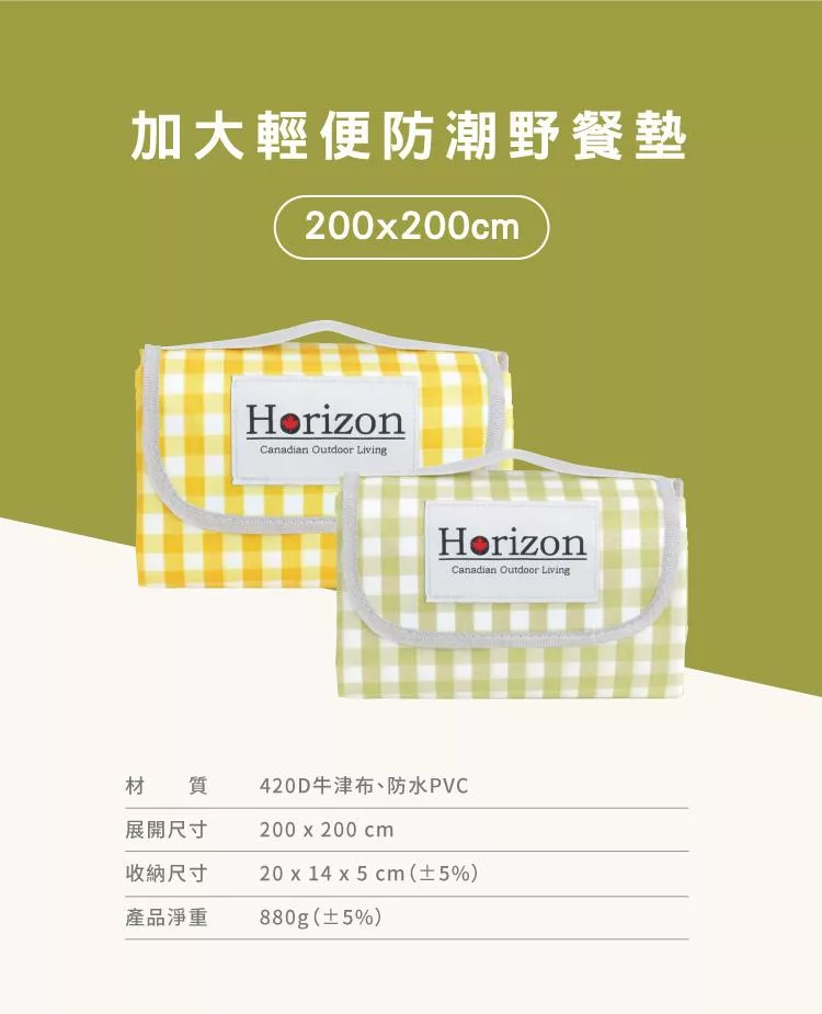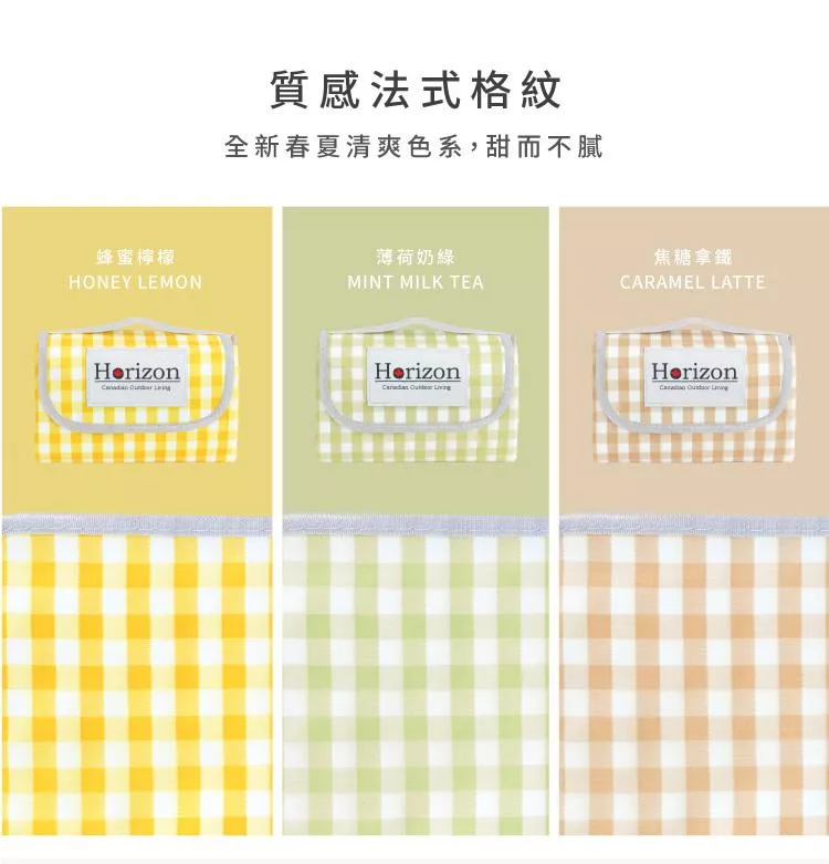【Horizon 天際線】法式格紋加大款輕便防潮野餐墊 200x200cm 蜂蜜檸檬