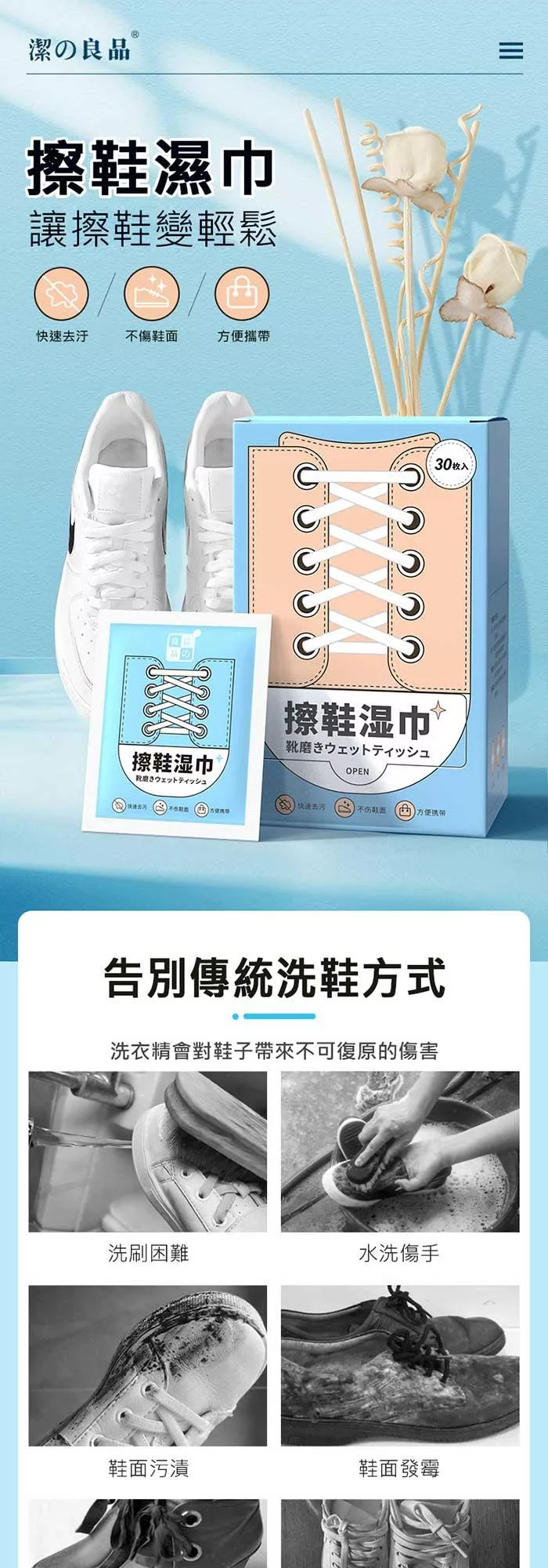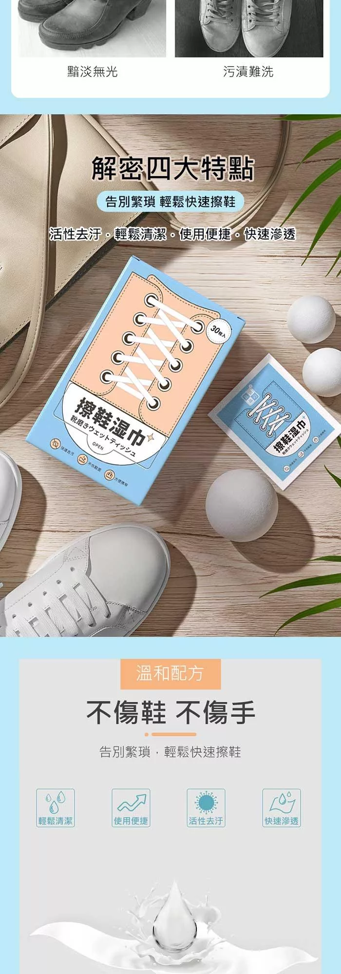 【白鞋救星】神奇去污白鞋濕巾 擦鞋濕紙巾 擦鞋巾 30片/盒