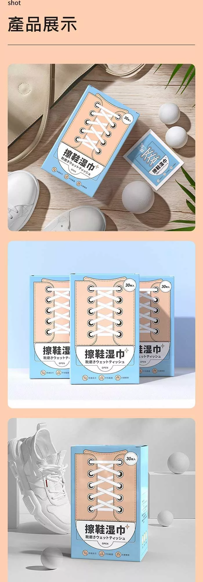 擦鞋巾 運動鞋 球鞋清潔 擦鞋濕巾 去汙濕巾 便攜包裝 30片/盒