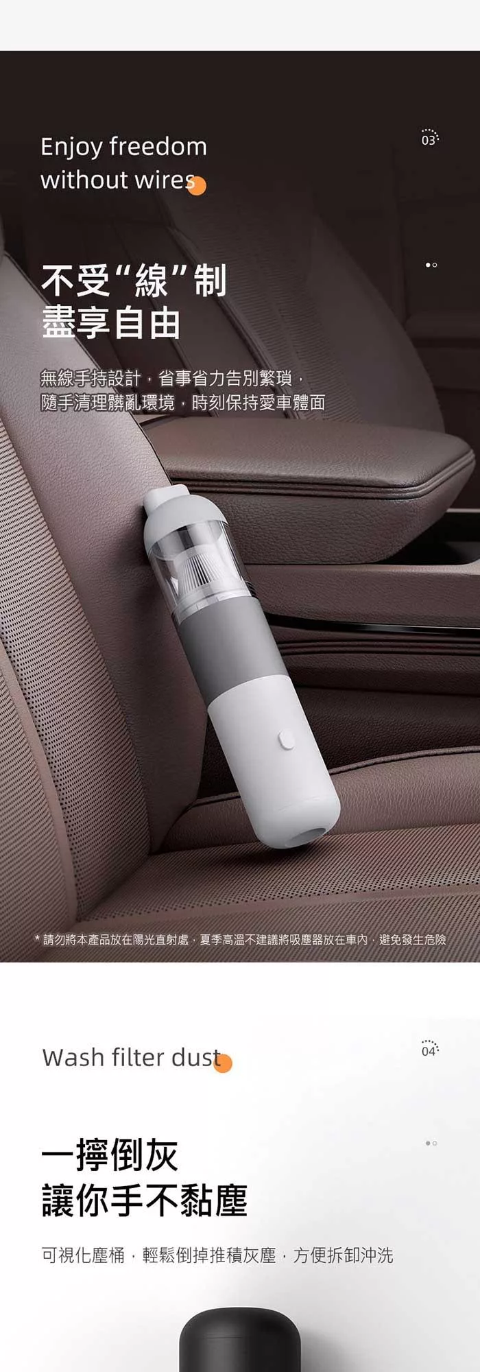 5.請勿將本產品放在陽光直射處,夏季高溫不建議將吸塵器放在車內,避免發生危險