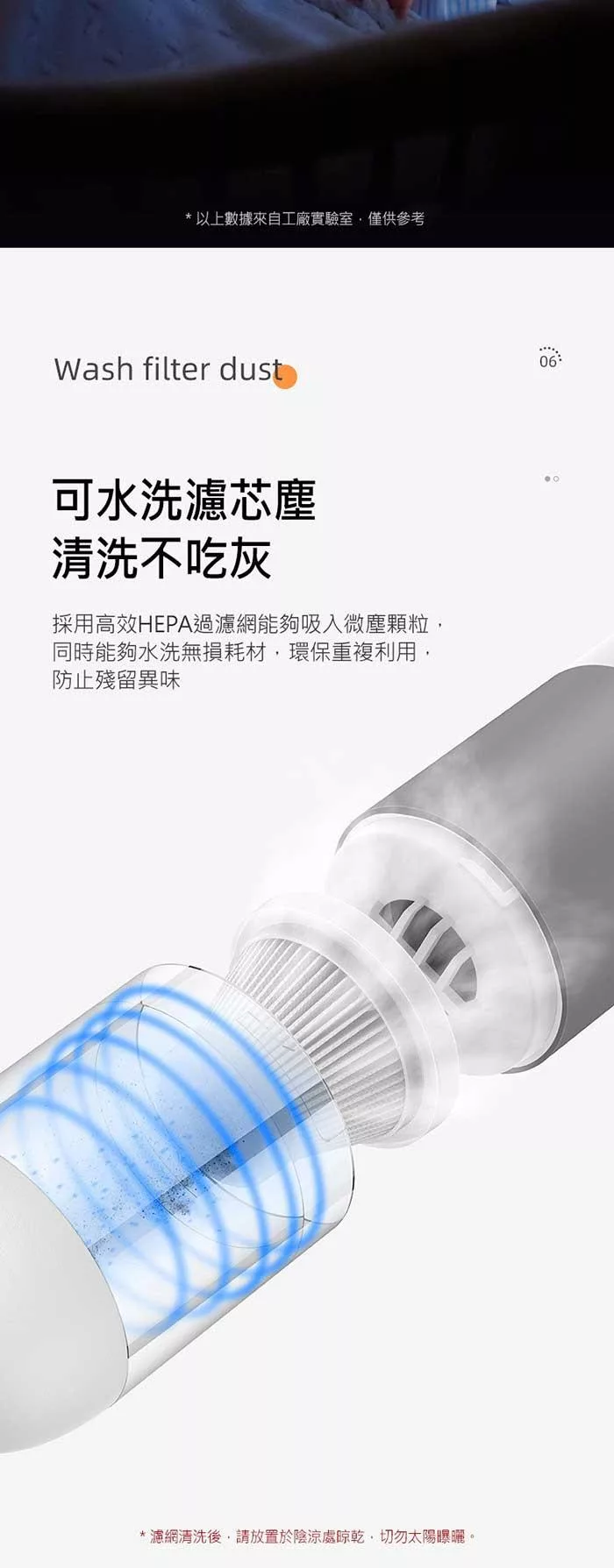 內置HEPA濾網,細密過濾微塵,可水洗重覆使用