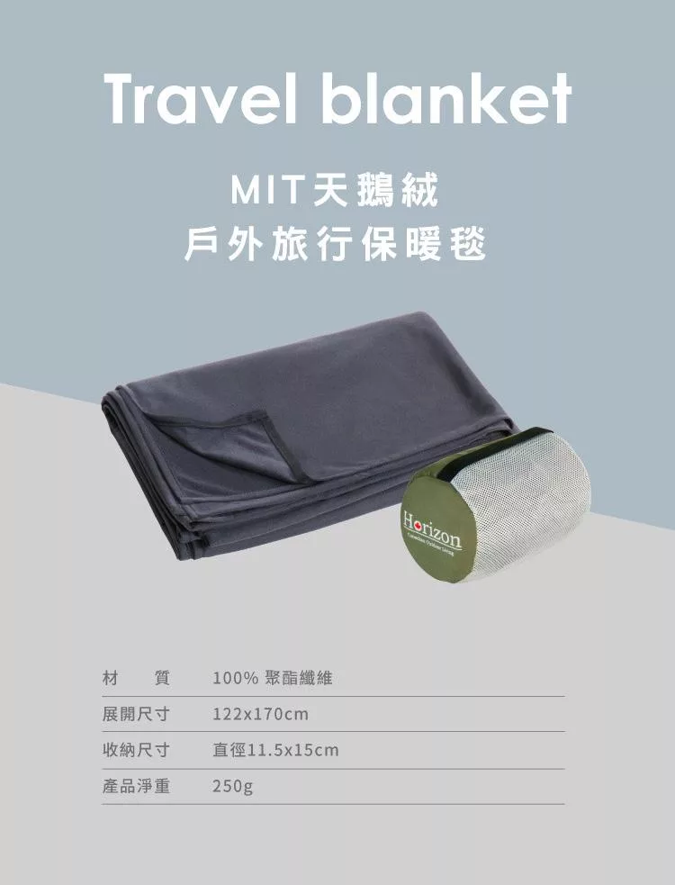 【Horizon 天際線】MIT天鵝絨戶外旅行保暖毯│選用台灣高級天鵝絨製成 | 輕鬆收納 好攜帶