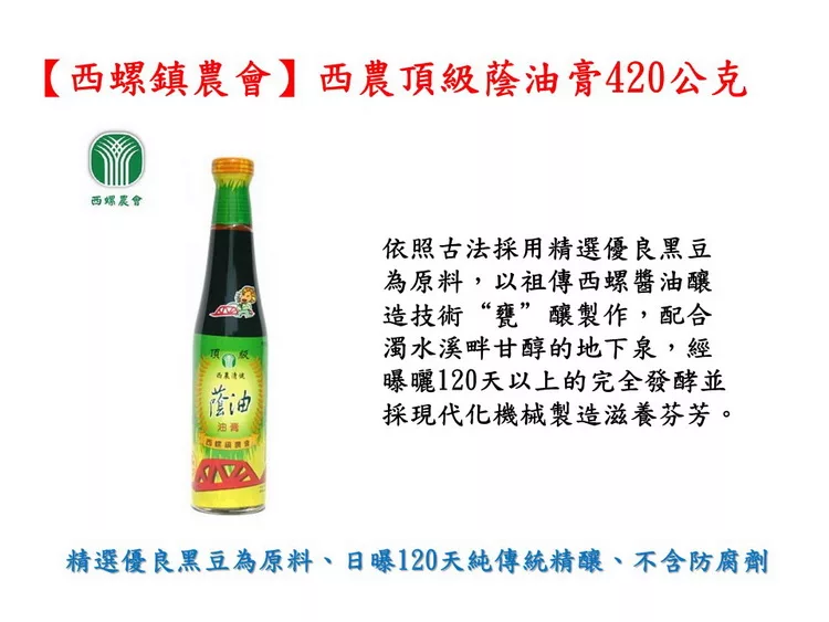 【西螺鎮農會】頂級蔭油膏420公克/瓶