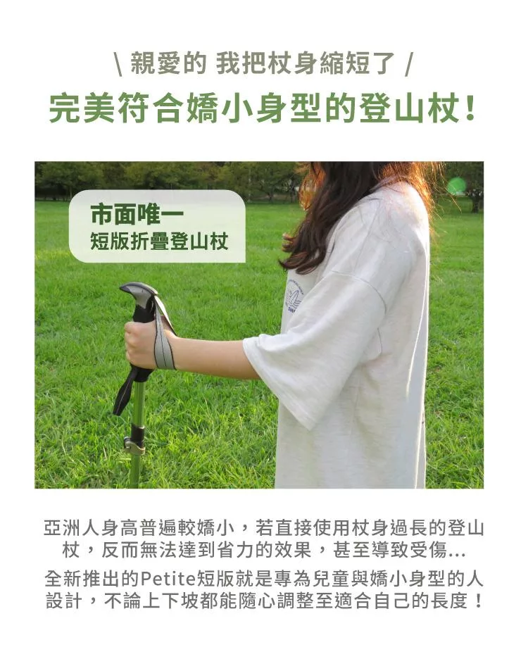 專為個子嬌小的山友們,量身訂做的登山杖!