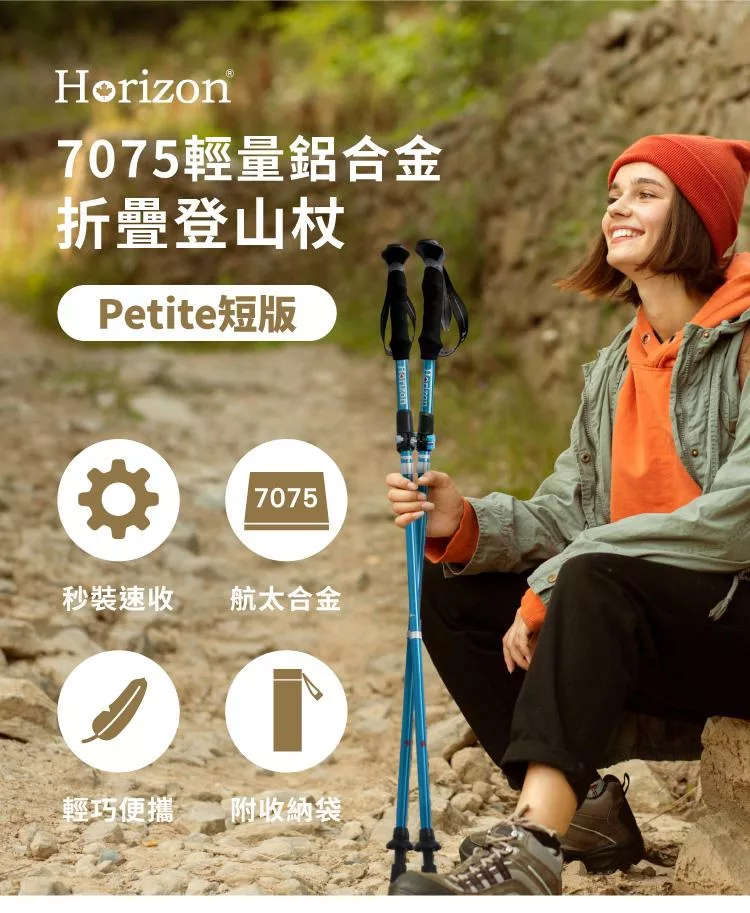 【Horizon 天際線】 Petite短版輕量鋁合金折疊登山杖 天河藍