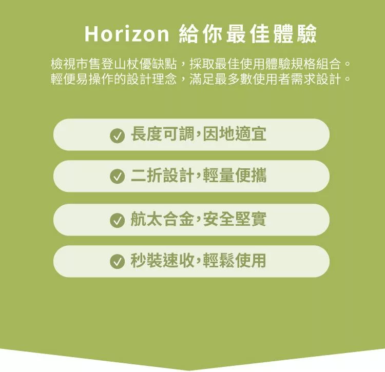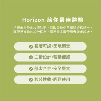 【Horizon 天際線】 輕量鋁合金折疊登山杖 雍容綠