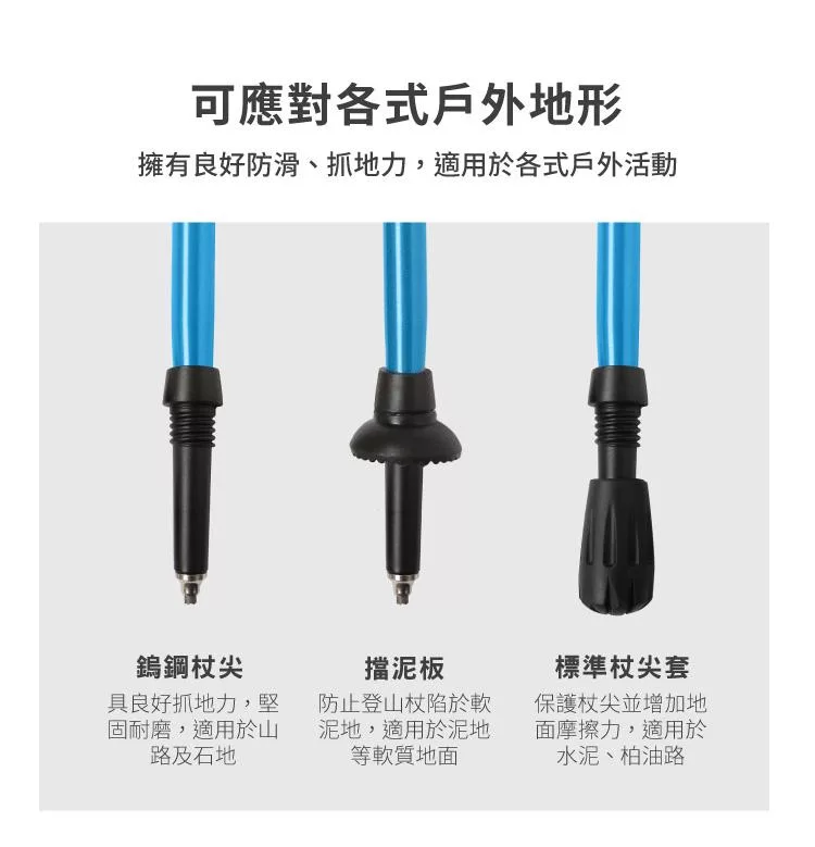 【OUTSY】極輕折疊式伸縮外鎖鋁合金添翼登山杖 附杖尖保護套 泥托海軍藍