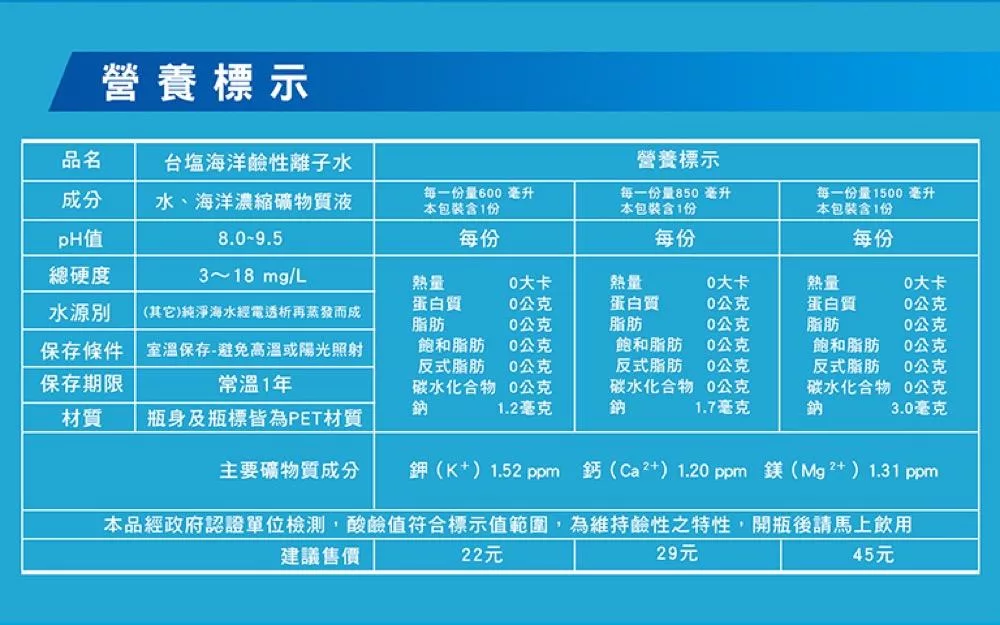 台鹽 海洋鹼性離子水 850mlx20入/箱