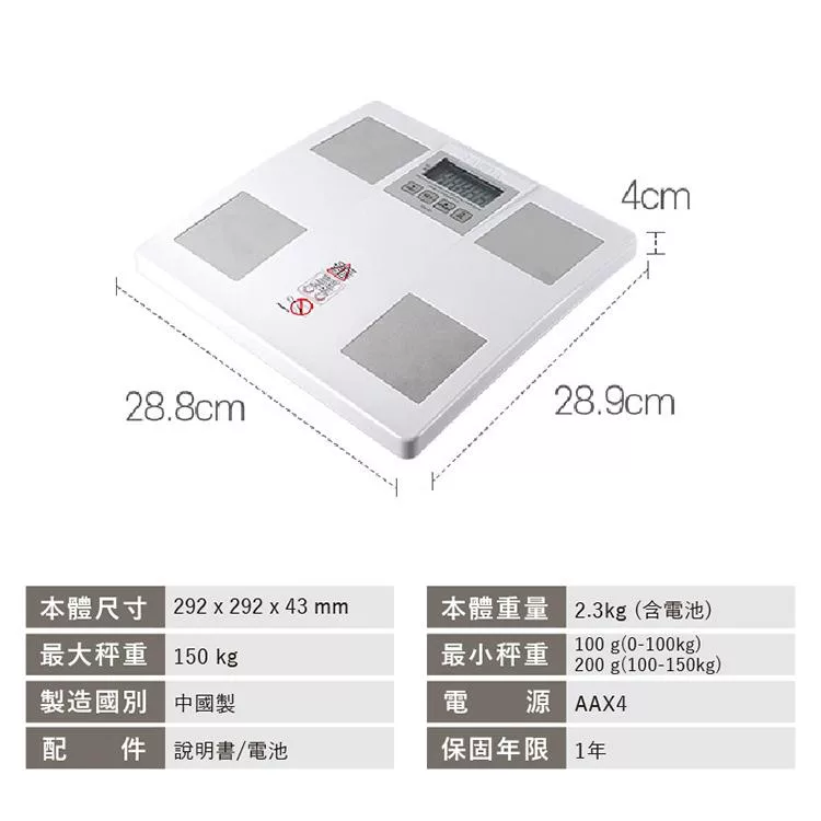 | 最大秤重 | 150 kg | 最小單位 | 100 g |