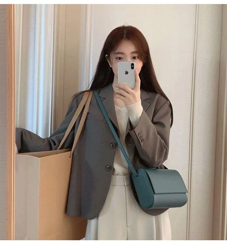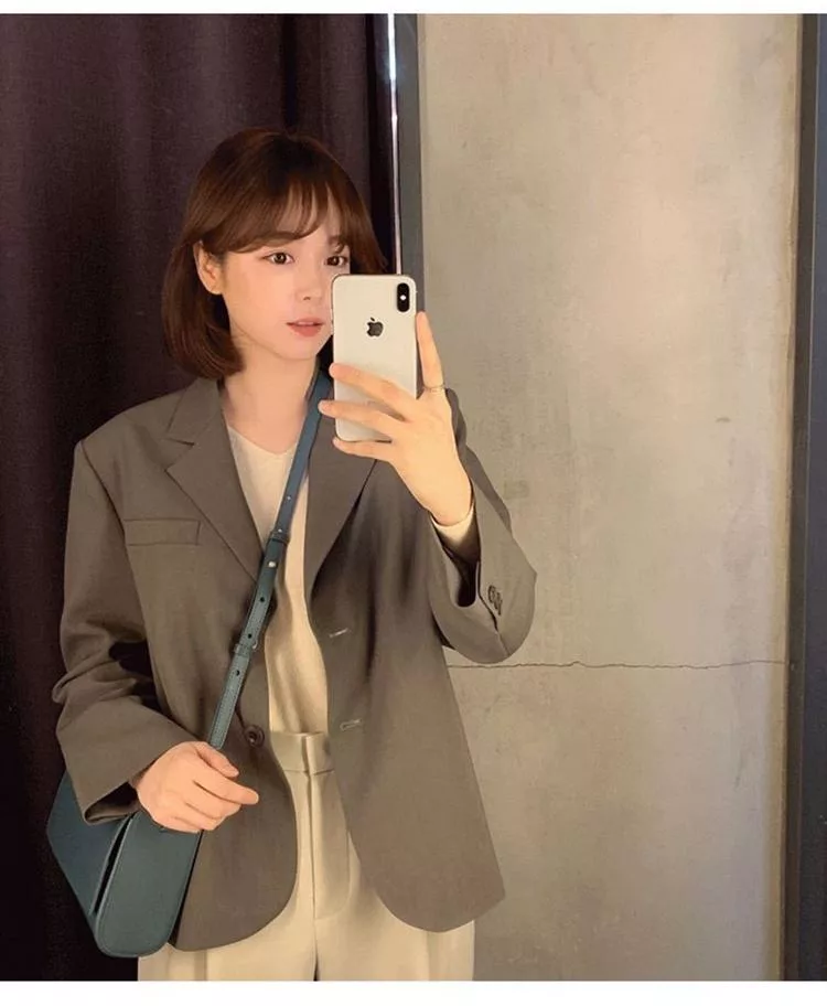 【Jilli~ko】韓版通勤設計感開扣休閒西裝外套 J11079  FREE 卡其