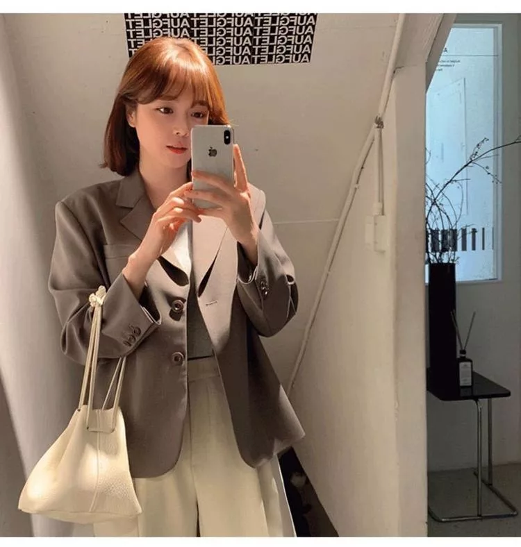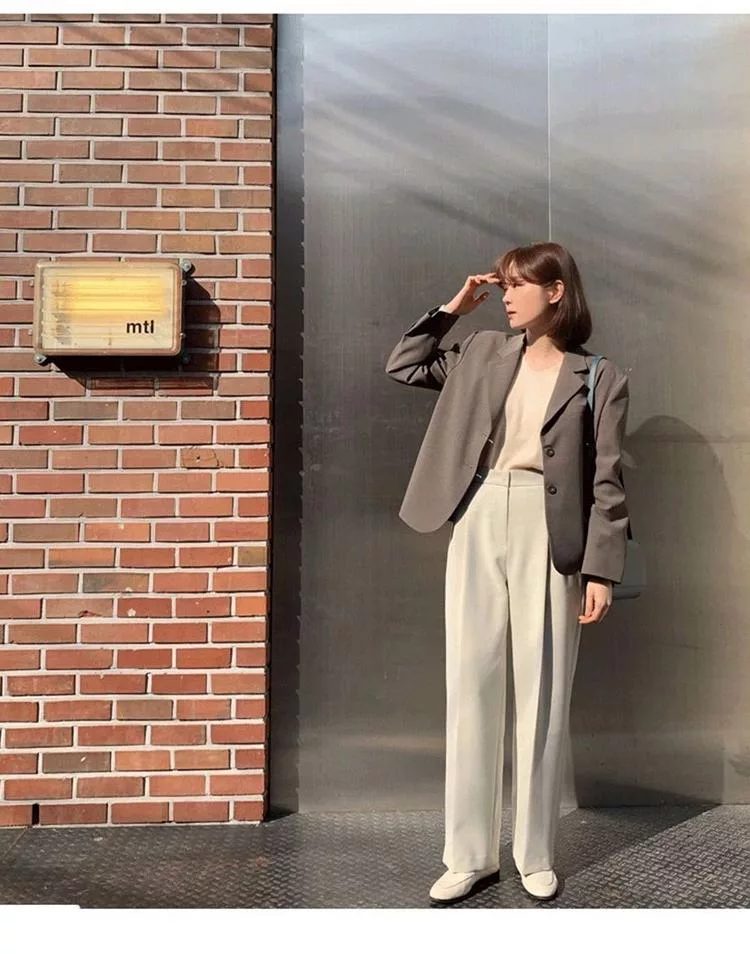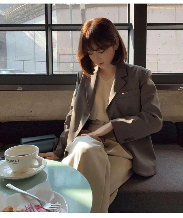 【Jilli~ko】韓版通勤設計感開扣休閒西裝外套 J11079 FREE 卡其