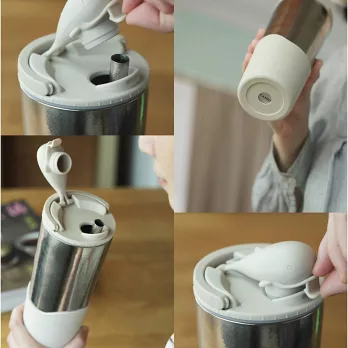 吸管直接放進杯中,蓋上鯨魚杯蓋,沒有複雜難洗的吸管固定結構,想喝時開蓋即可立刻吸一口。