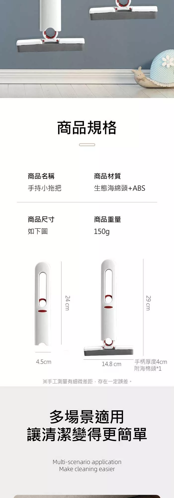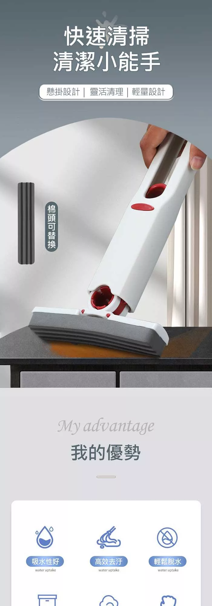 注意:收到時拖把頭濕濕的~是正常狀況(因為要避免海綿硬化)