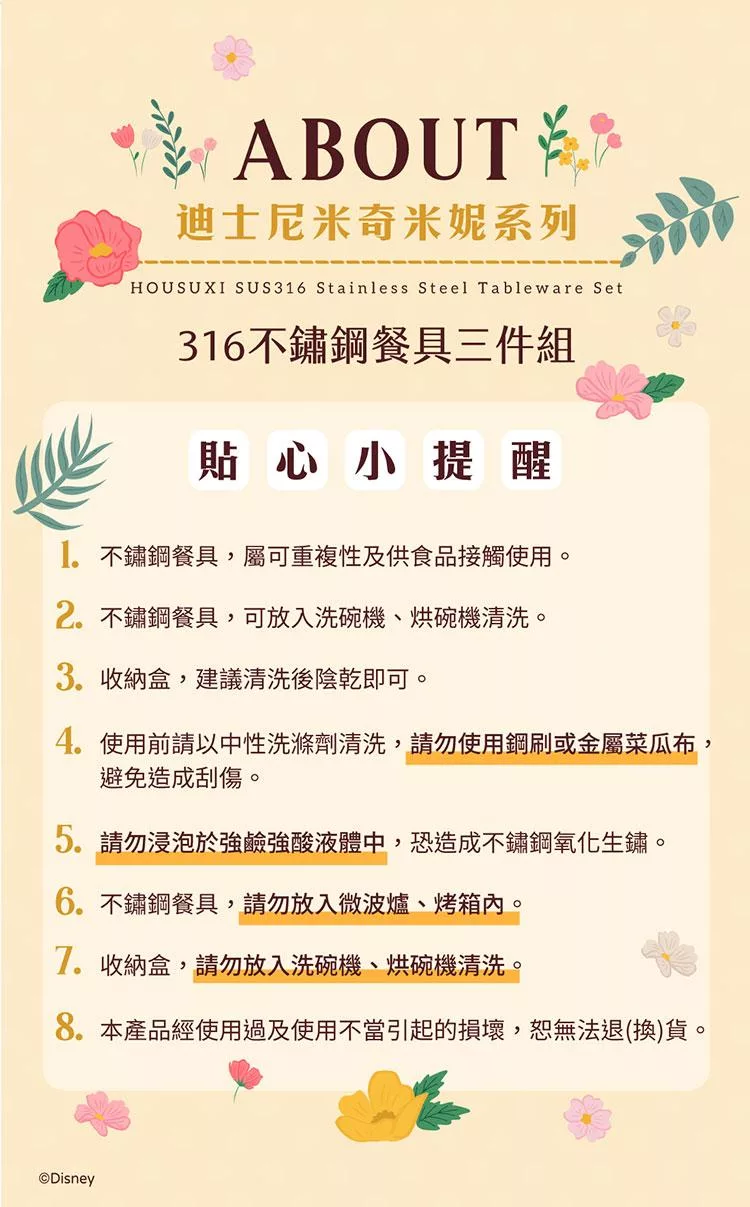 【HOUSUXI舒希】迪士尼小熊維尼系列 _316不鏽鋼餐具三件組A1