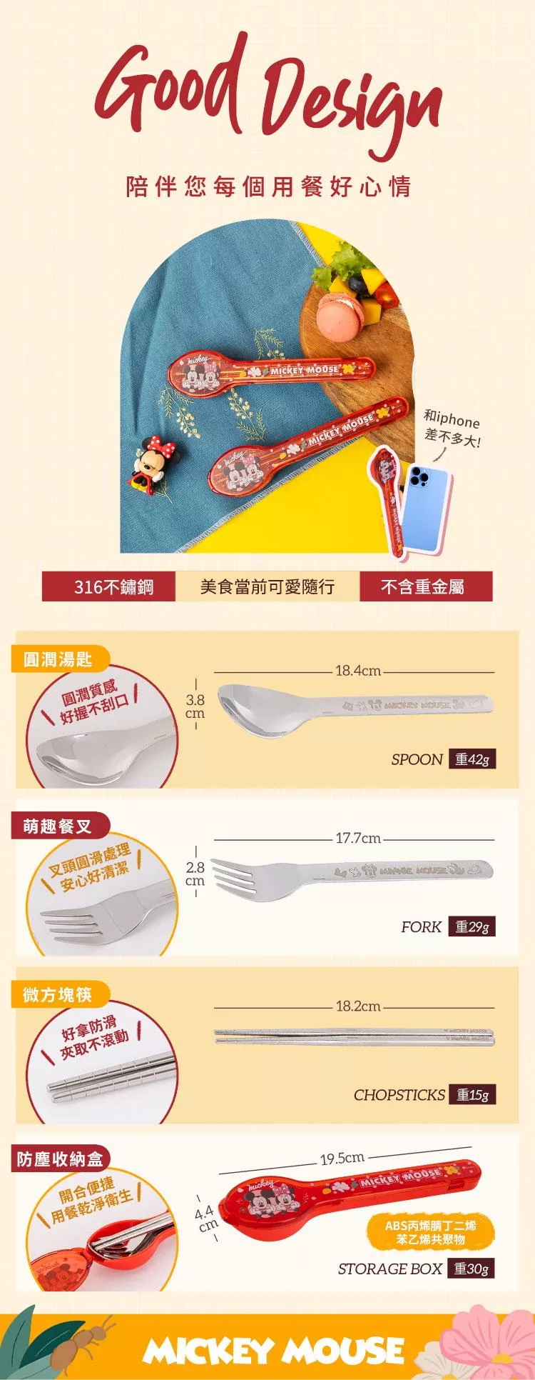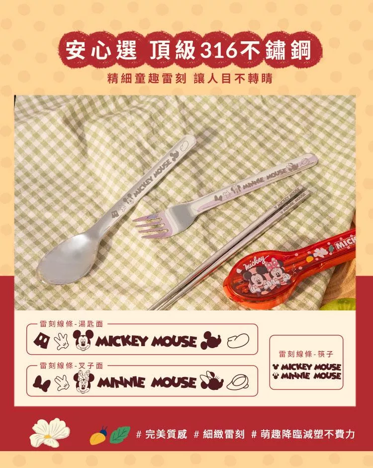 【韓國Lilfant】Mickey米奇 不鏽鋼餐具2入組(湯匙+叉子)