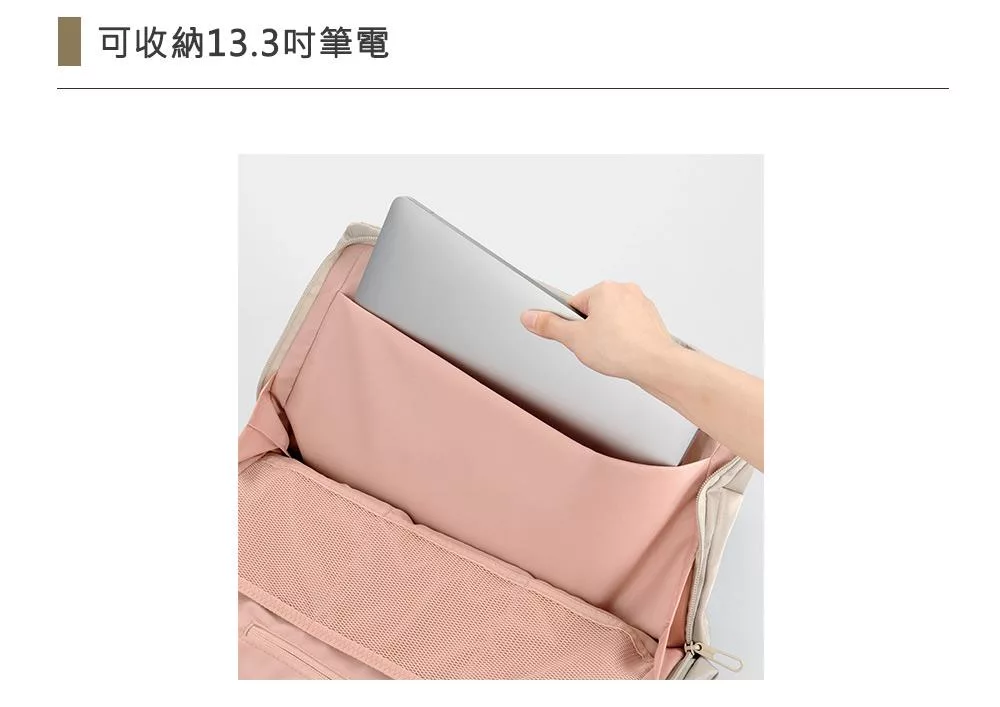【好背客howback】韓版輕量休閒雙肩包/多功能收納曬娃包/學生後背包(無掛件) -米色