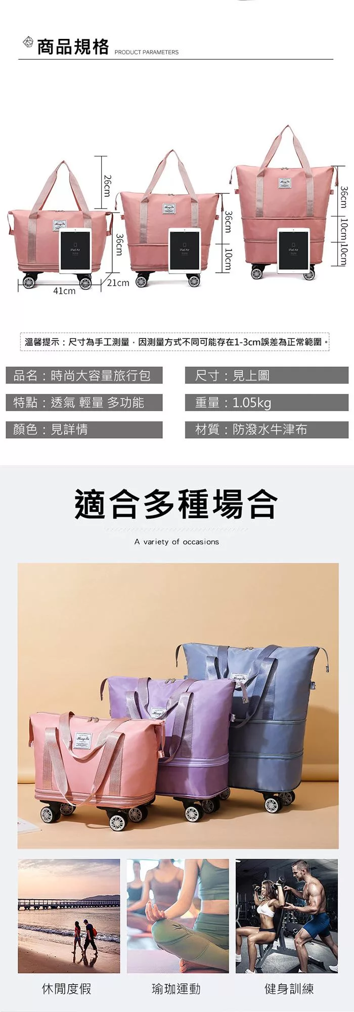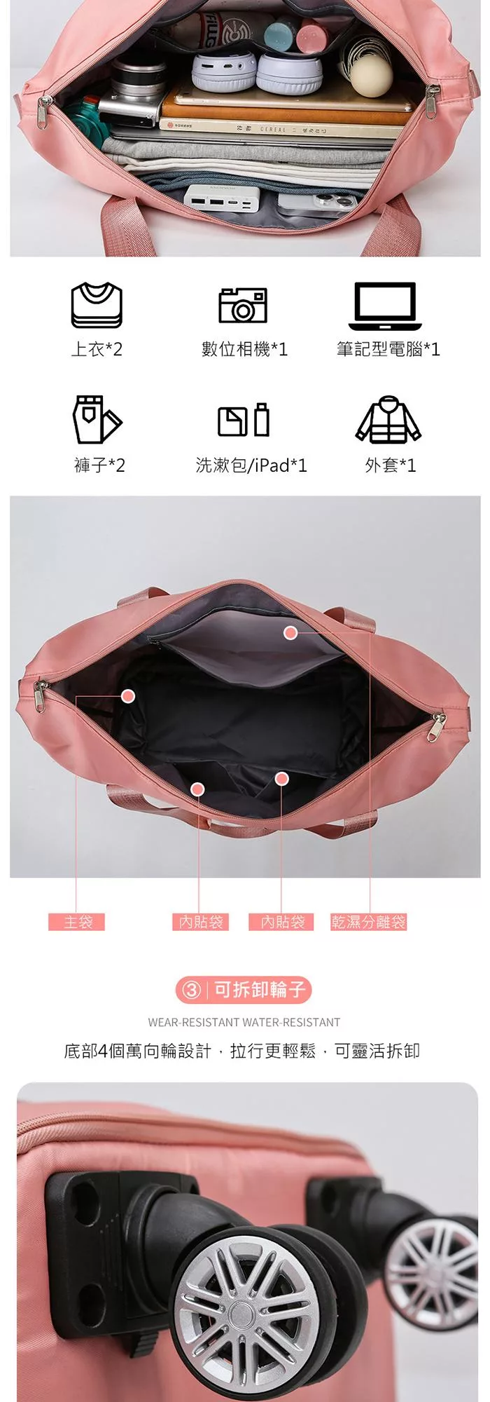 品名:可拆萬向輪行李袋