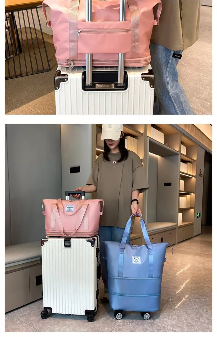 【防潑水面料/送鎖頭】大容量帶輪折疊行李袋 二層擴容旅行袋/收納袋/旅行包 行李拉桿包 可拆萬向輪 附密碼鎖