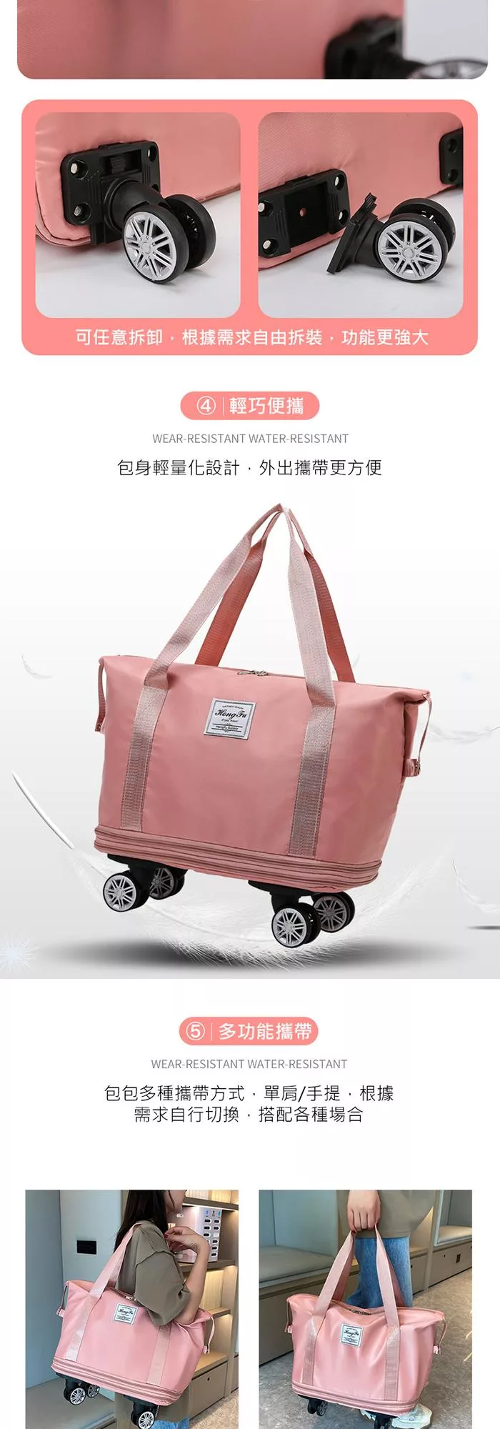 可拆卸360度萬向輪,拉行更輕鬆
