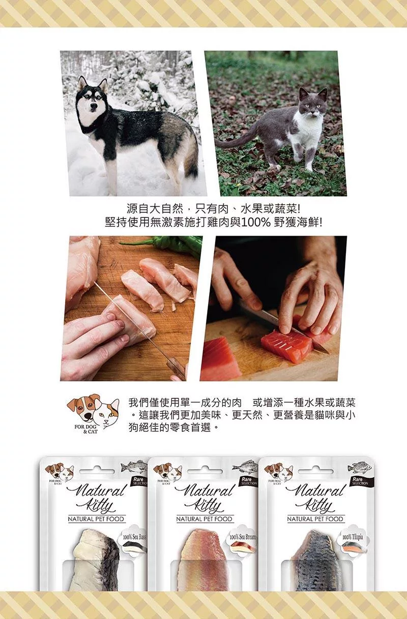 Natural Kitty 自然小貓 - 100%天然鮮肉條 - 天然鯛魚|30g(犬貓通吃)