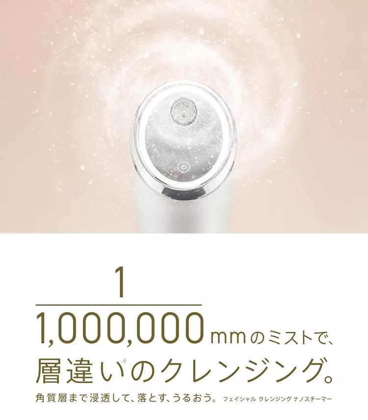 ◆採用奈米級蒸汽,溫度約為45℃,搭配超微粒子水蒸氣(1/1,000,000),透過獨特設計螺旋氣流輕柔地包裹整個臉部,徹底清潔難以去除的彩妝和皮脂。有助於向角質層輸送水分,使皮膚變得濕潤、柔軟、滋潤。