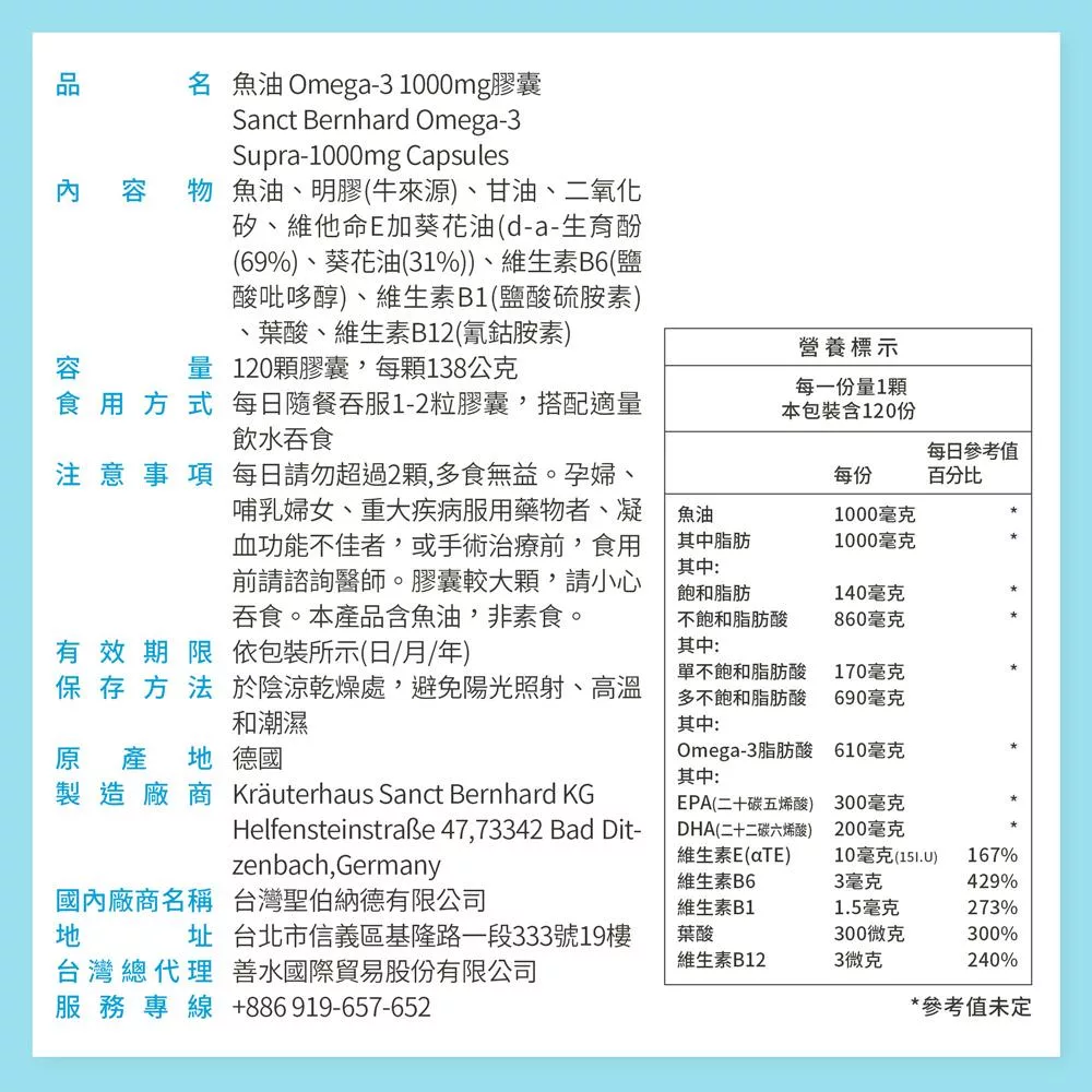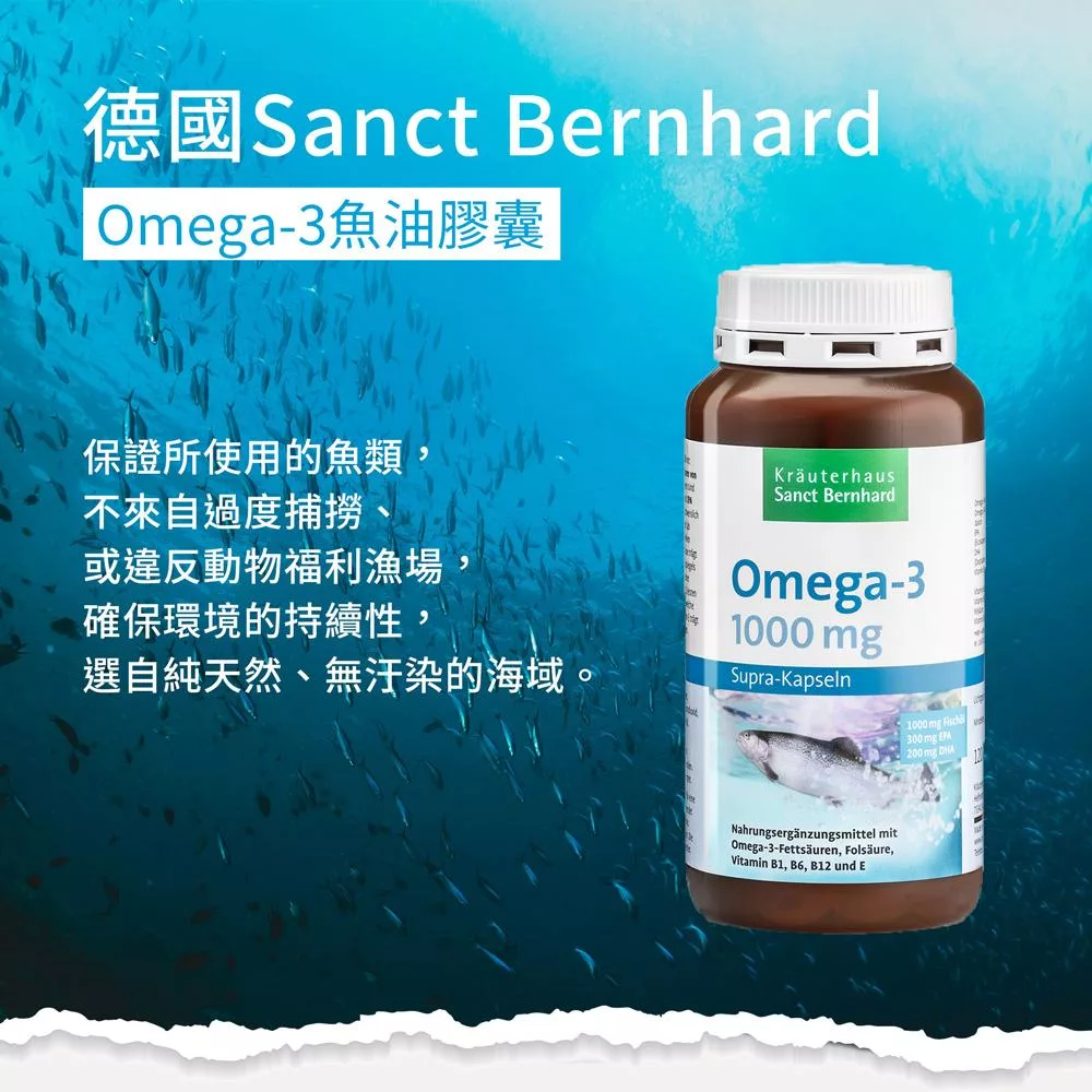 聖伯納德 Sanct Bernhard Omega-3魚油膠囊500mg(400粒/罐)天然多不飽和 omega-3 脂肪酸-原 德國百年草本