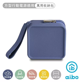 方型行動電源適用 萬用矽膠收納包(10x10x3.5cm) 海軍藍