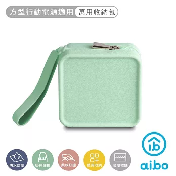 方型行動電源適用 萬用矽膠收納包(10x10x3.5cm) 薄荷綠