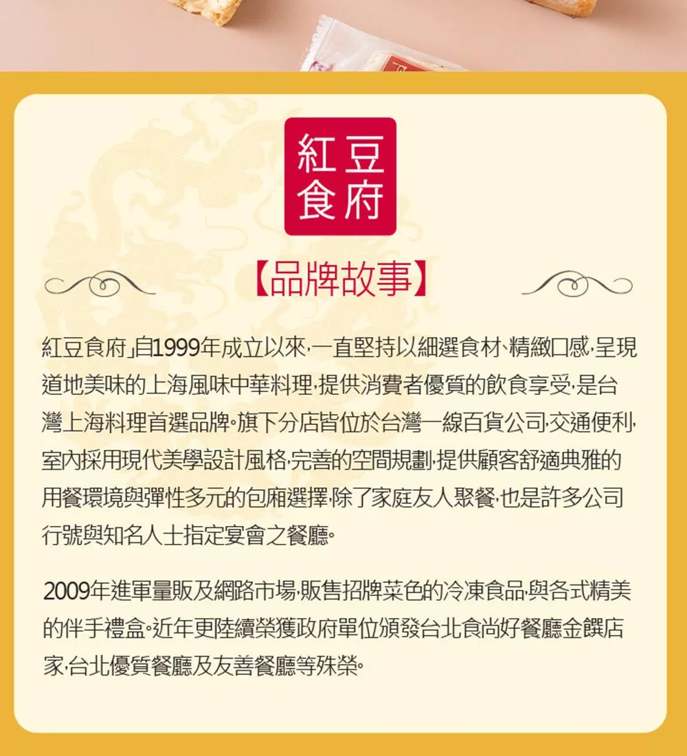 1.料理食品為短效期商品,皆為接獲訂單後製作,若須指定到貨請於住址欄後方備註希望收貨的日期,以免商品已排入製作或配送。經宅配送出後請勿任意更改訂單寄送資料,以利商品如期出貨。【轉廠商出貨商品,出貨日期: 可接受指定到貨日期,恕不接受指定配送時段】