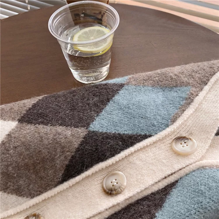 【Jilli~ko】配色菱格毛呢針織背心 1328 FREE 淺咖