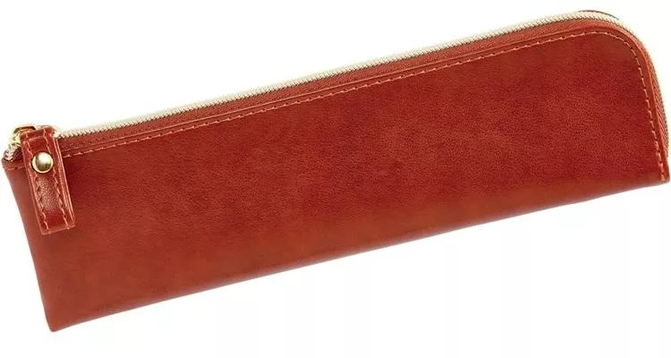 【Clairefontaine|Leather Pencil Cases】原色_植鞣小羊皮革拉鍊軟袋 _三角形 _原色皮