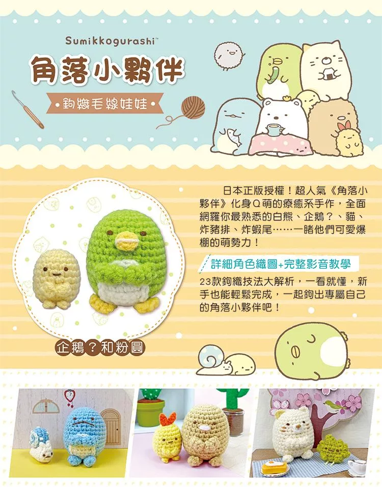 【HobbyEasy】角落小夥伴鉤織毛線娃娃(附鉤針超值全材料包套組,含立體背景卡) 企鵝?&粉圓