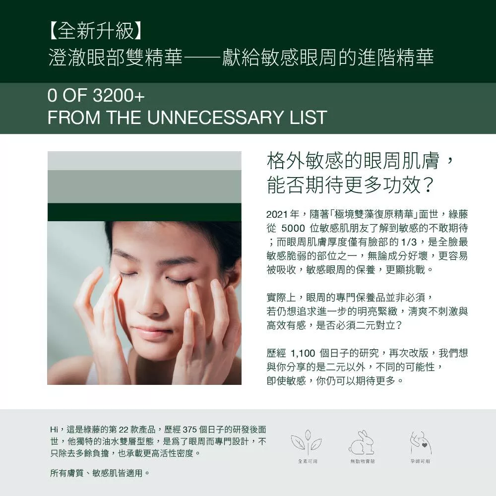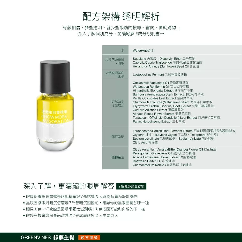 【綠藤生機 Greenvines】澄澈眼部雙精華 15ml (獻給敏感眼周的進階精華)