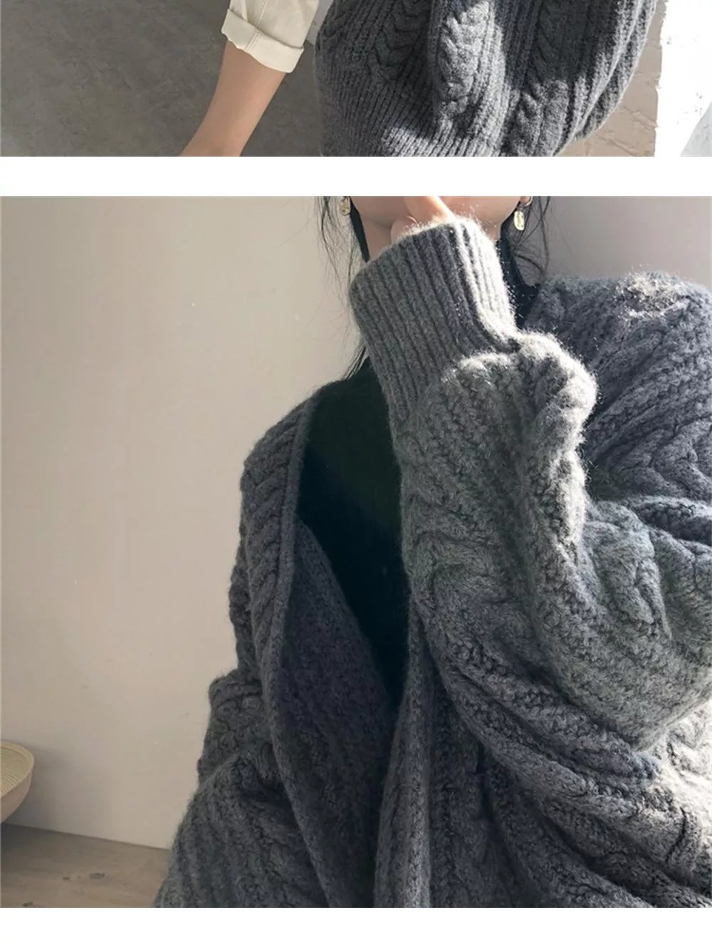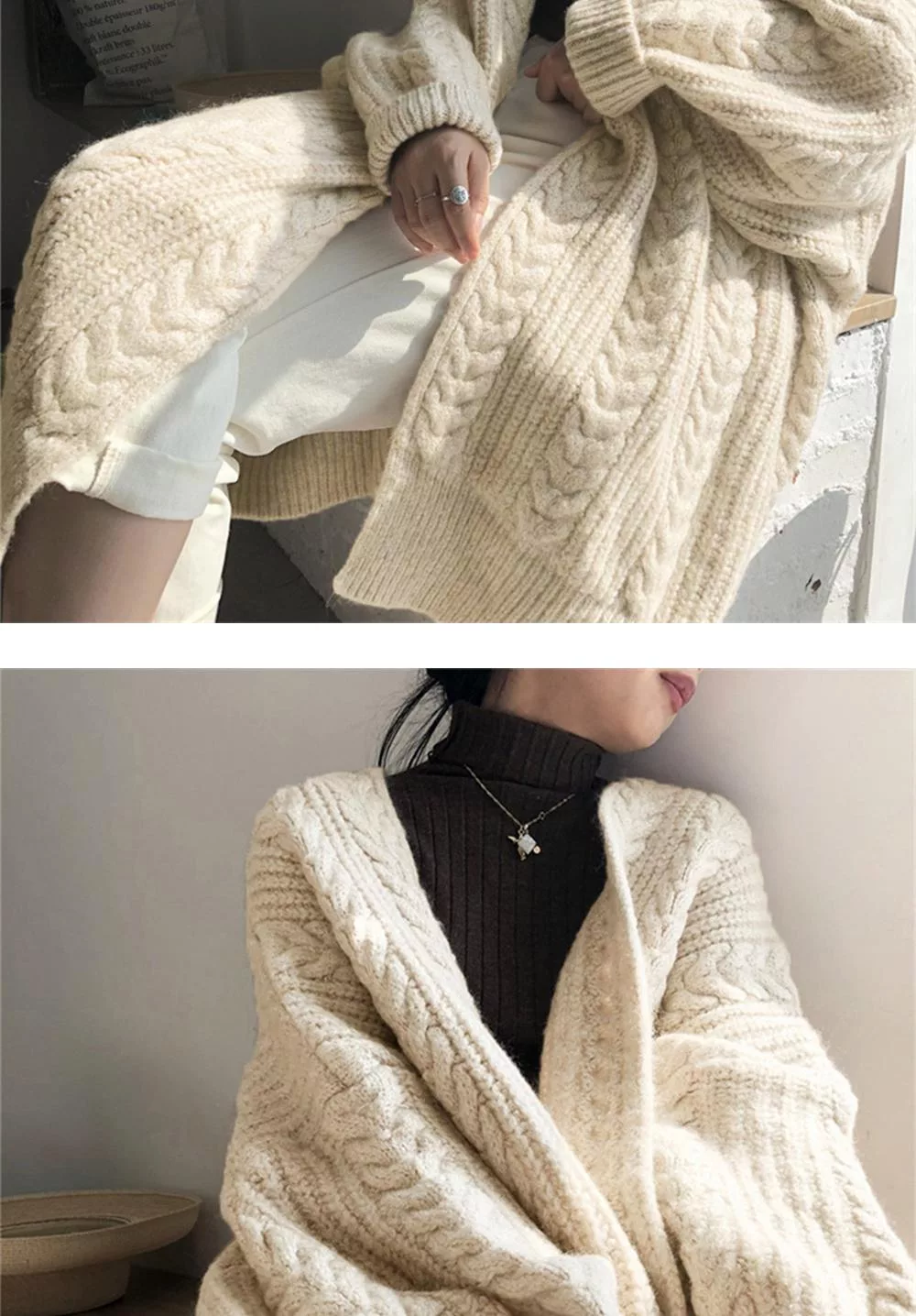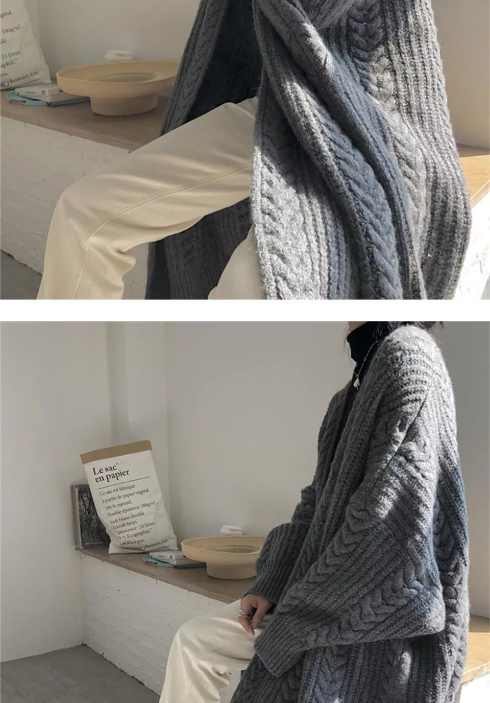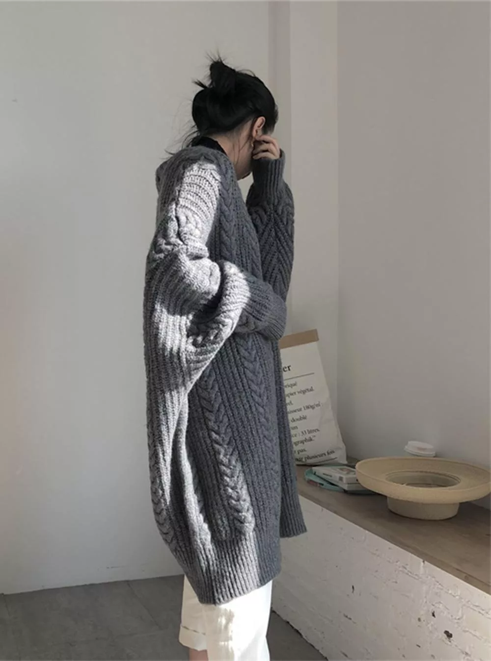 【Jilli~ko】粗針織麻花中長款針織外套 6242 FREE深灰色