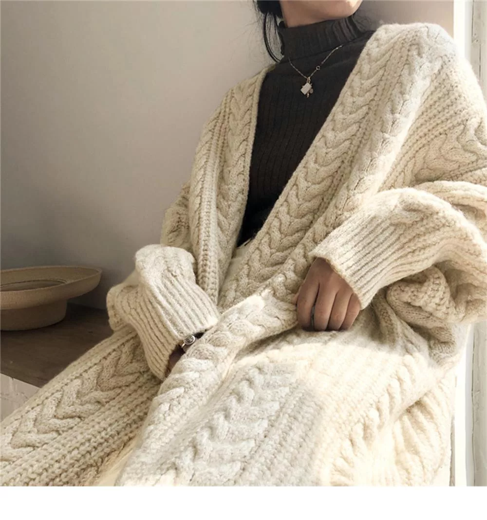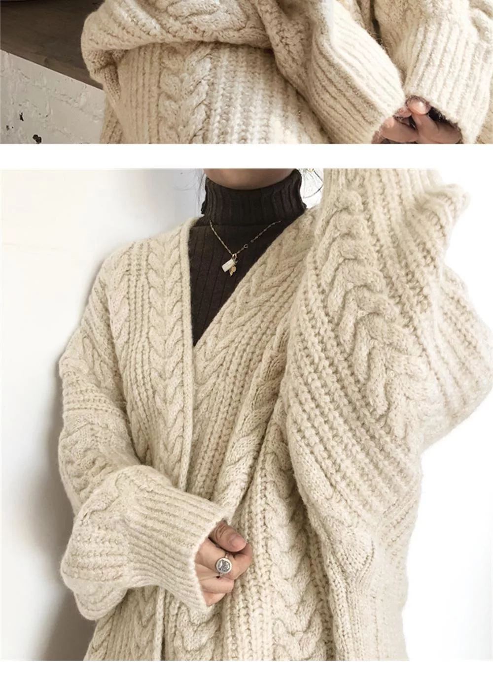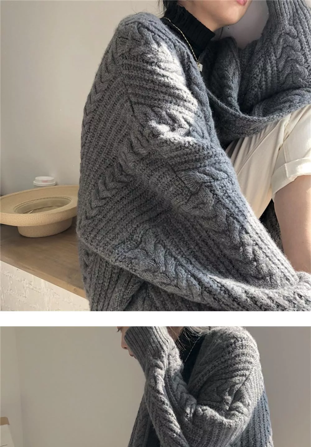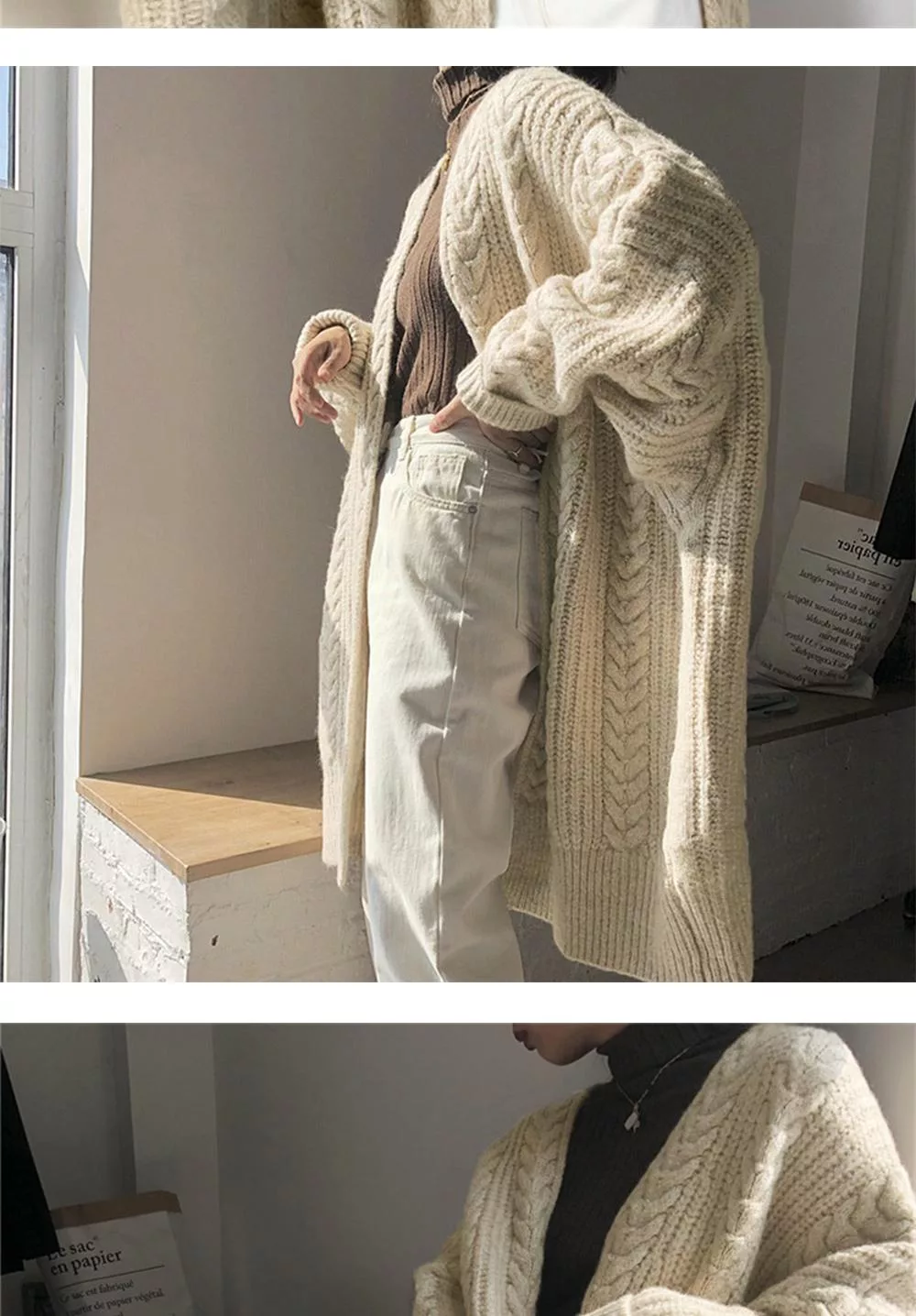 【Jilli~ko】粗針織麻花中長款針織外套 6242 FREE深灰色
