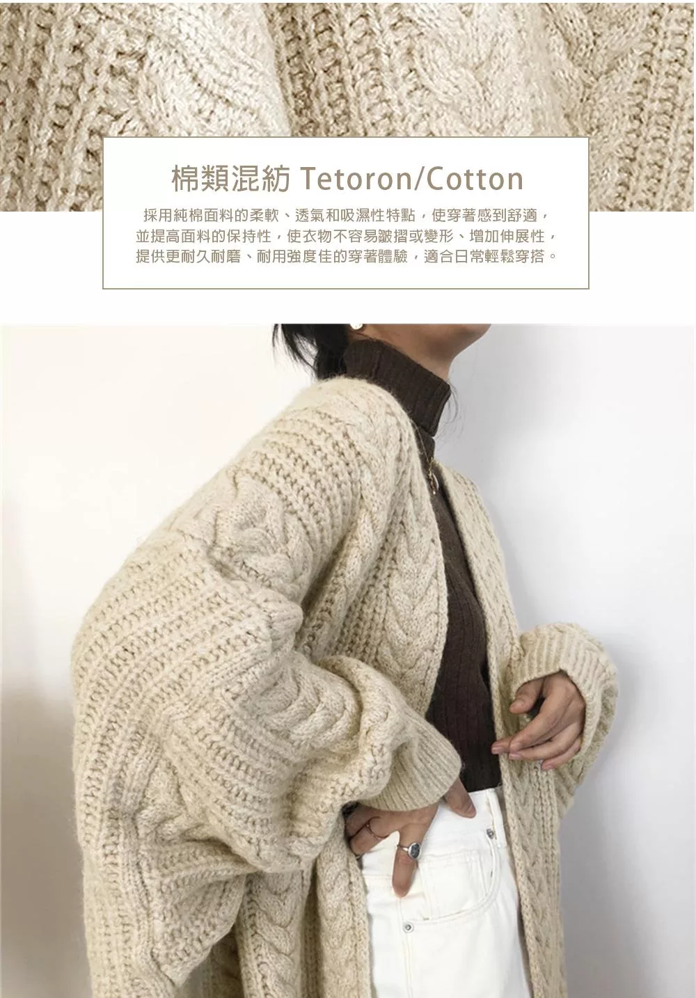 【AMIEE】溫柔粗鉤針麻花毛衣外套(2色/FREE/KDTQ-6943) F 杏色