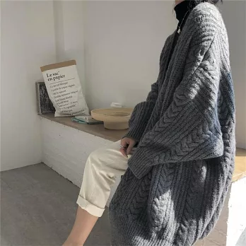 【AMIEE】溫柔粗鉤針麻花毛衣外套(2色/FREE/KDTQ-6943) F 灰色