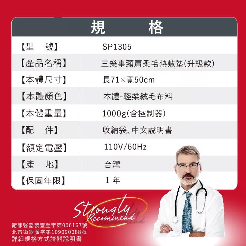 Sunlus 三樂事暖暖頸肩雙用熱敷柔毛墊 SP1213
