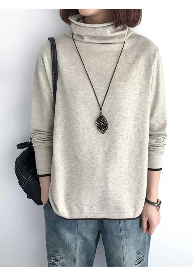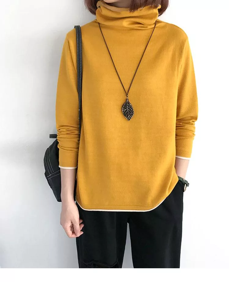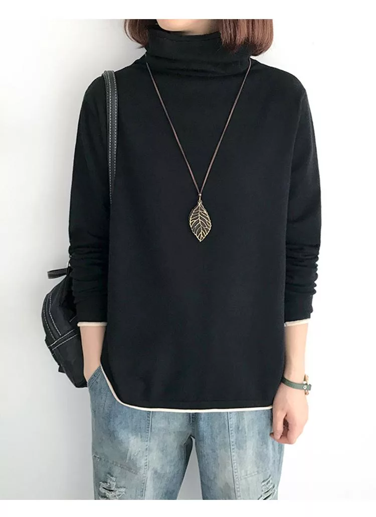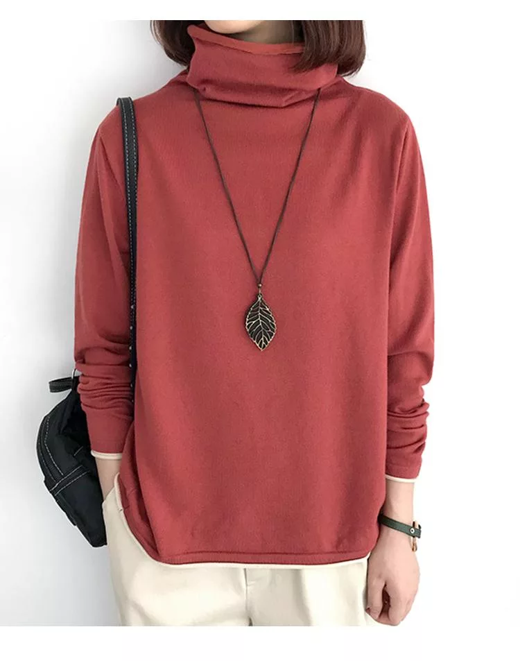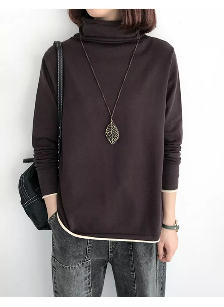 【初色】秋冬高領加厚純色保暖寬鬆長袖上衣-共5色-31673(M-2XL可選) L 咖啡色