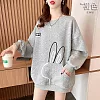 【初色】卡通兔子印花寬鬆休閒薄款愛心提花圓領長袖大口袋T恤上衣女上衣-共2色-39939(M-2XL可選) M 灰色