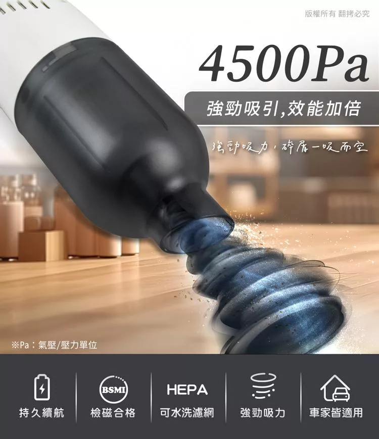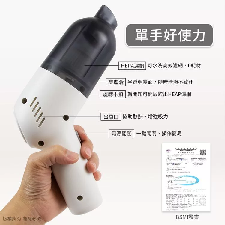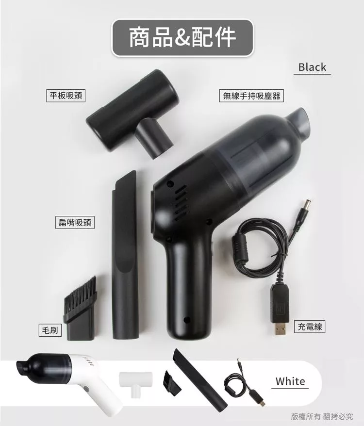 【Timo】北歐風USB充電式無線手持吸塵器/車用吸塵器 室內室外吸塵器 小電節能- 午夜黑