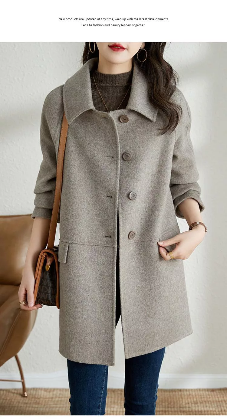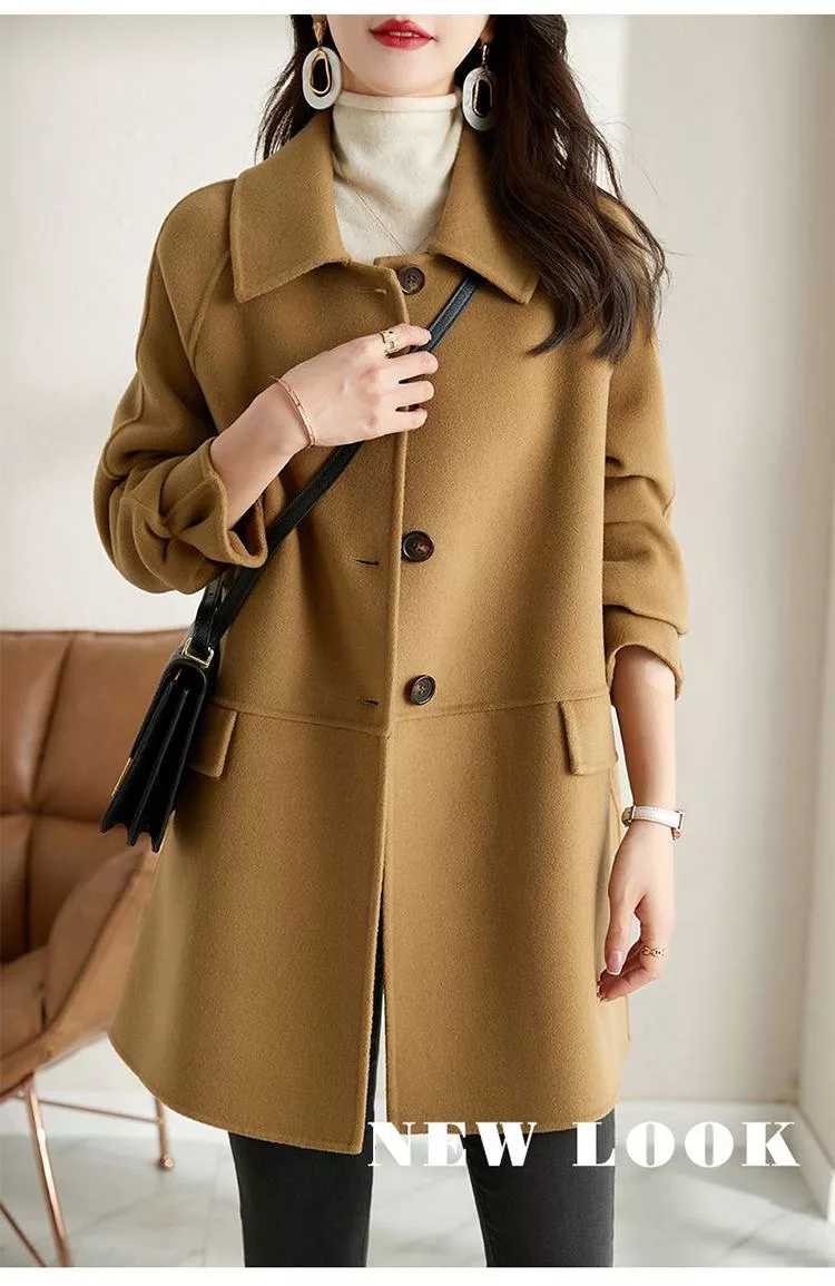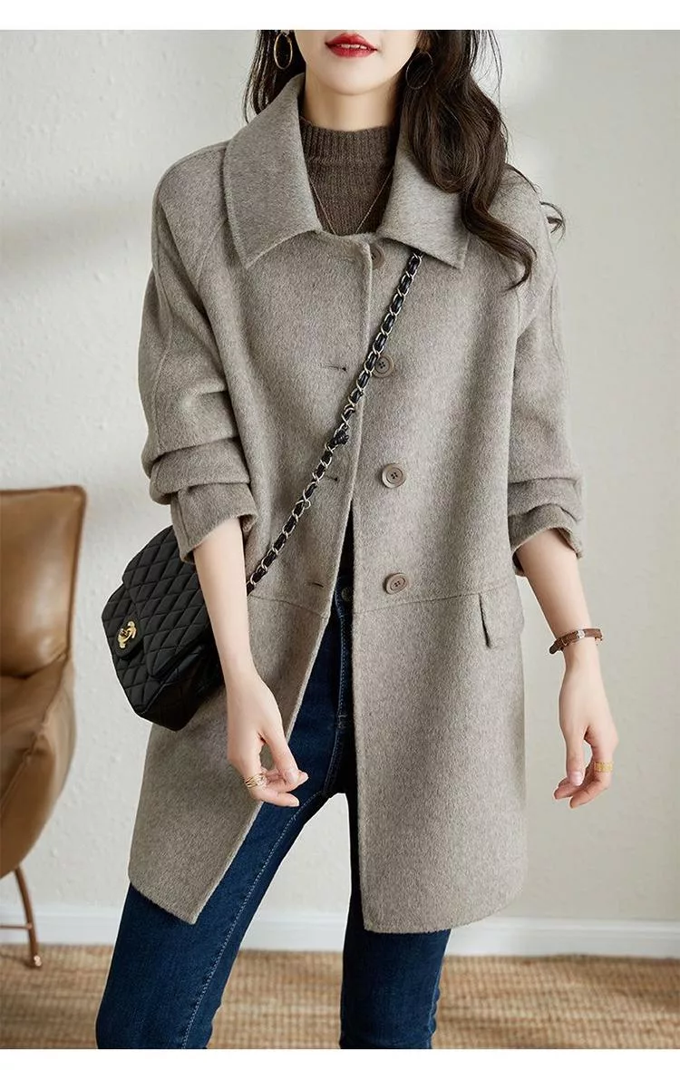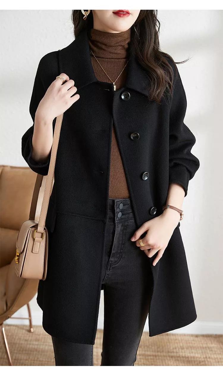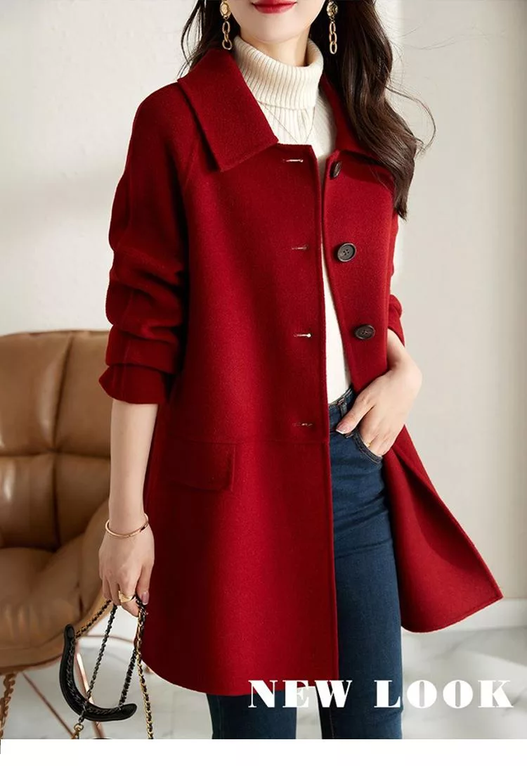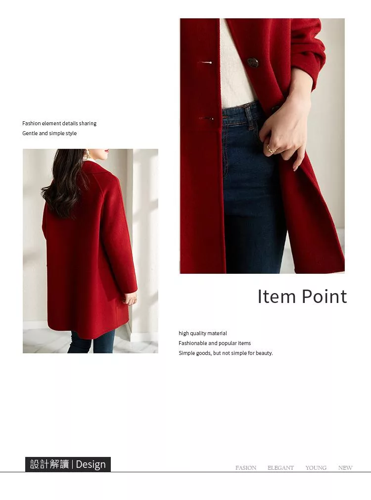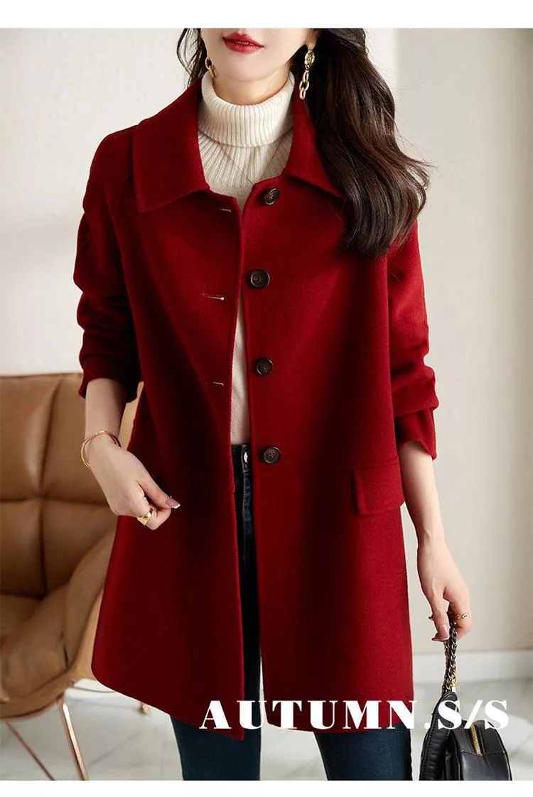 【初色】韓版素色翻領長袖單排釦直筒中長款毛呢西裝外套女外套-共4色-31999(M-2XL可選) M 紅色