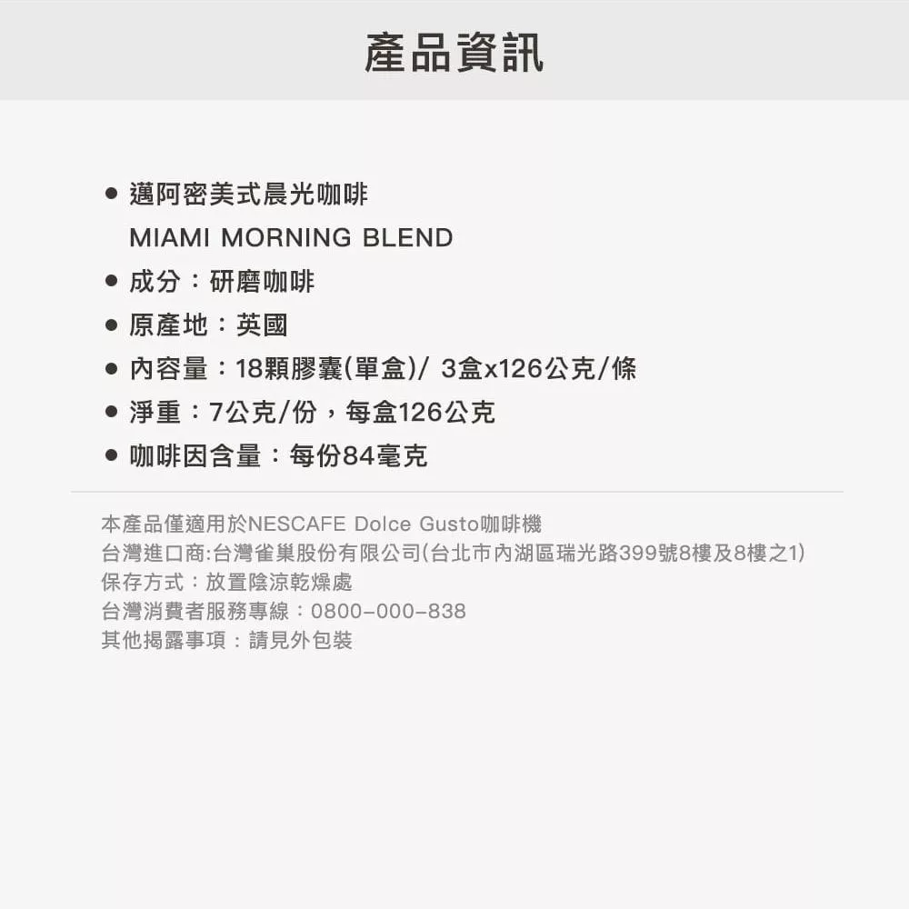 【雀巢咖啡-Dolce Gusto】咖啡膠囊_ 邁阿密美式晨光18顆入