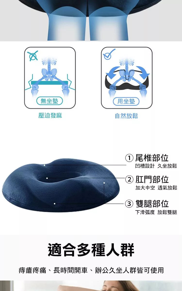 HONDONI 新款4D美臀坐墊 記憶坐墊 痔瘡坐墊 減壓坐墊 舒壓坐墊 抒壓坐墊 (水晶絨豪華版)